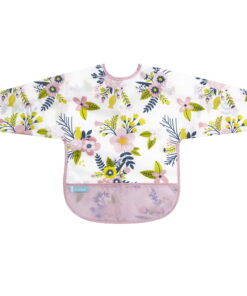 Protect your little one’s clothes from big messes at mealtime with Kushies Cleanbib with Sleeves. Featuring a catch-all pocket to intercept stray pieces of food before hitting the floor and long sleeves for complete coverage, they can also be used as an art smock. The lightweight fabric is easy to care for and instantly re-usable – simply rinse and wipe clean! Ethically made in Canada!