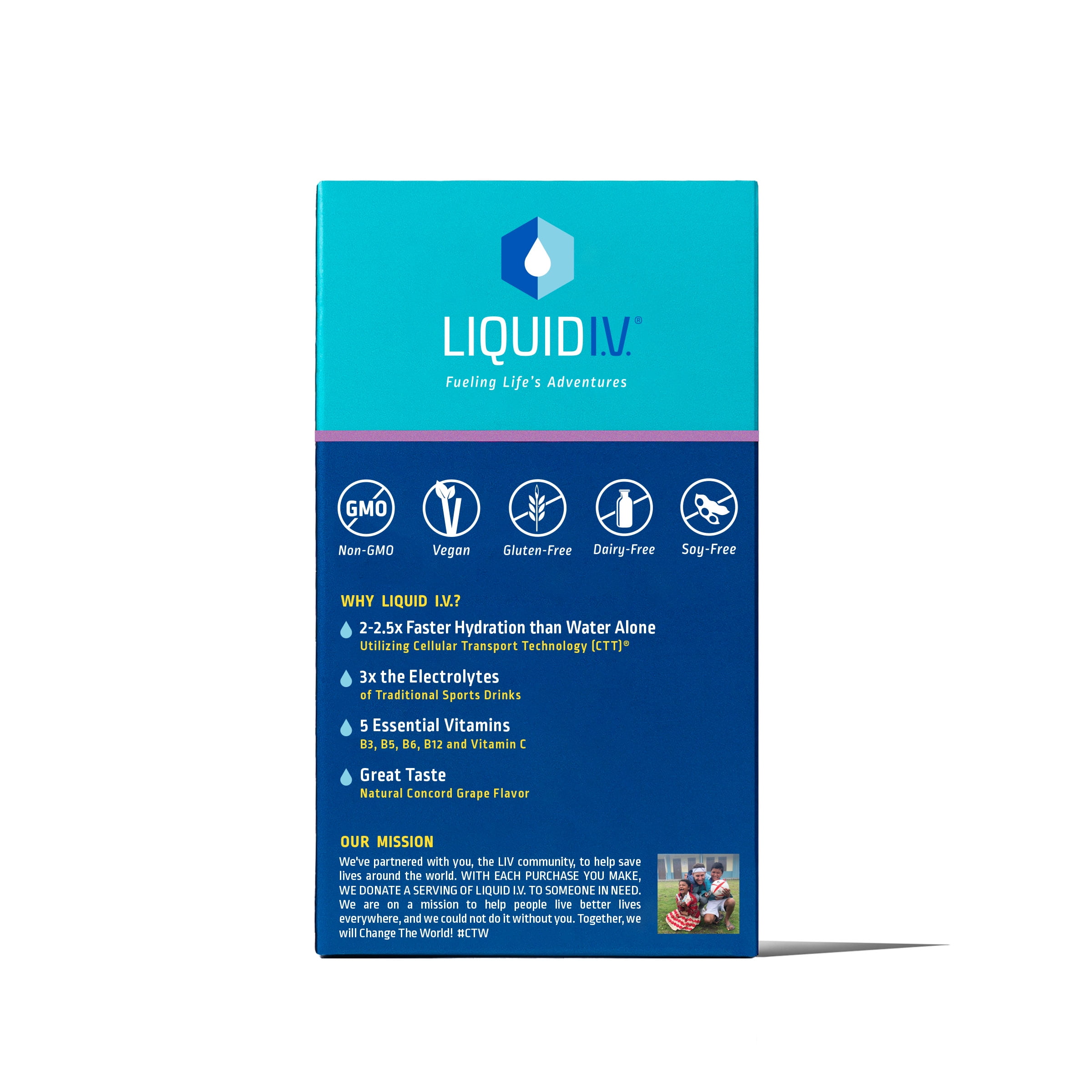 Liquid I.V. Hydration Multiplier, Grape, 6 Ct, Electrolyte Powder Packet Drink Mix