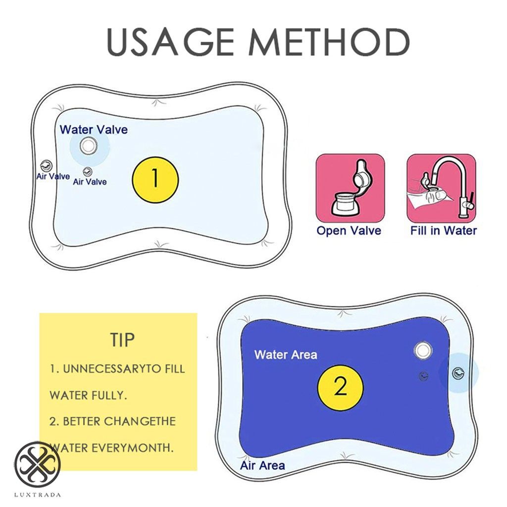 - Kids water play mat constructed from thicken PVC will not leak air or water.