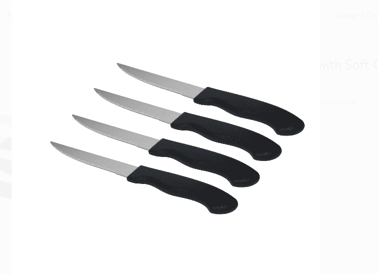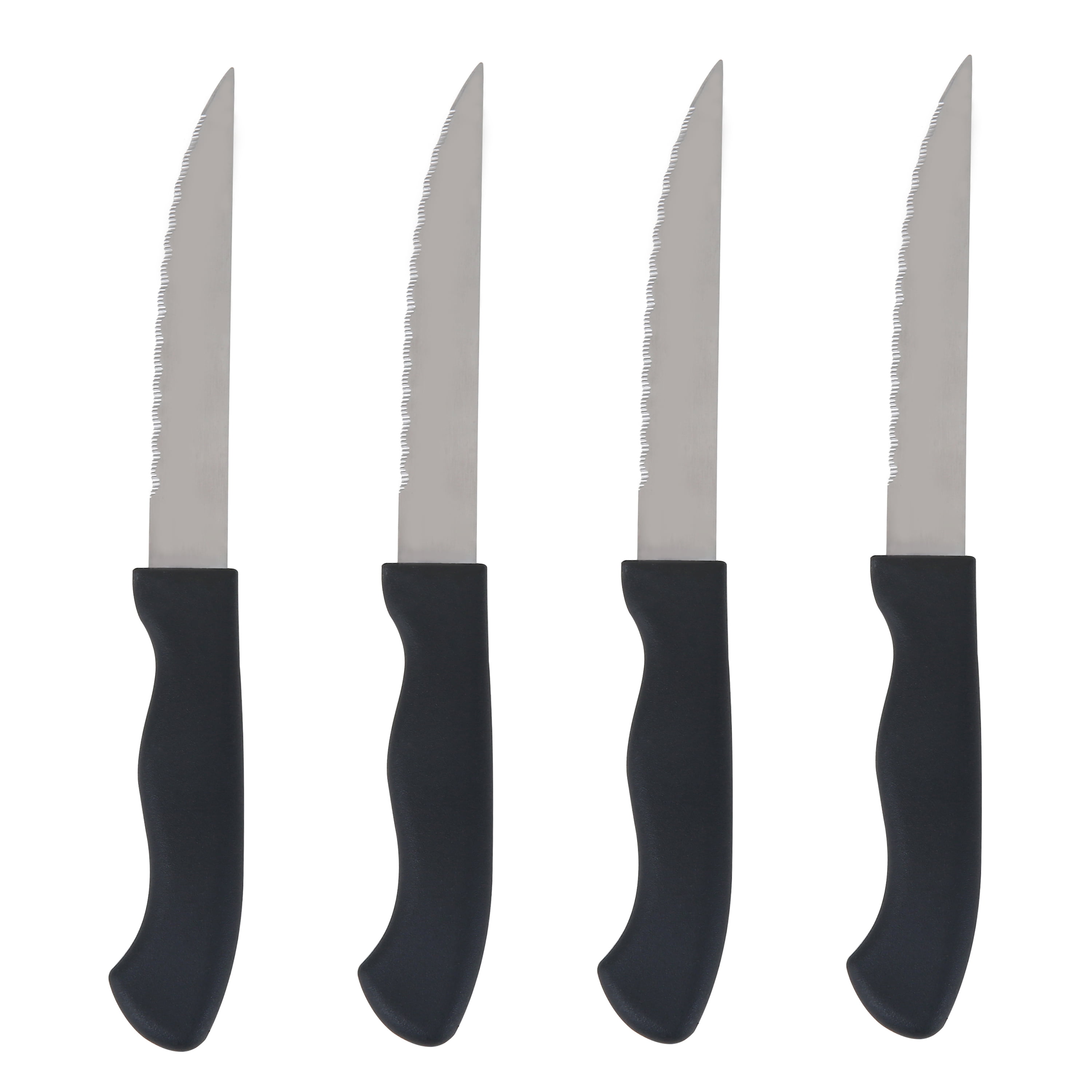 Mainstays 4-piece Steak Knife Set with Soft Grip & Black Handles: