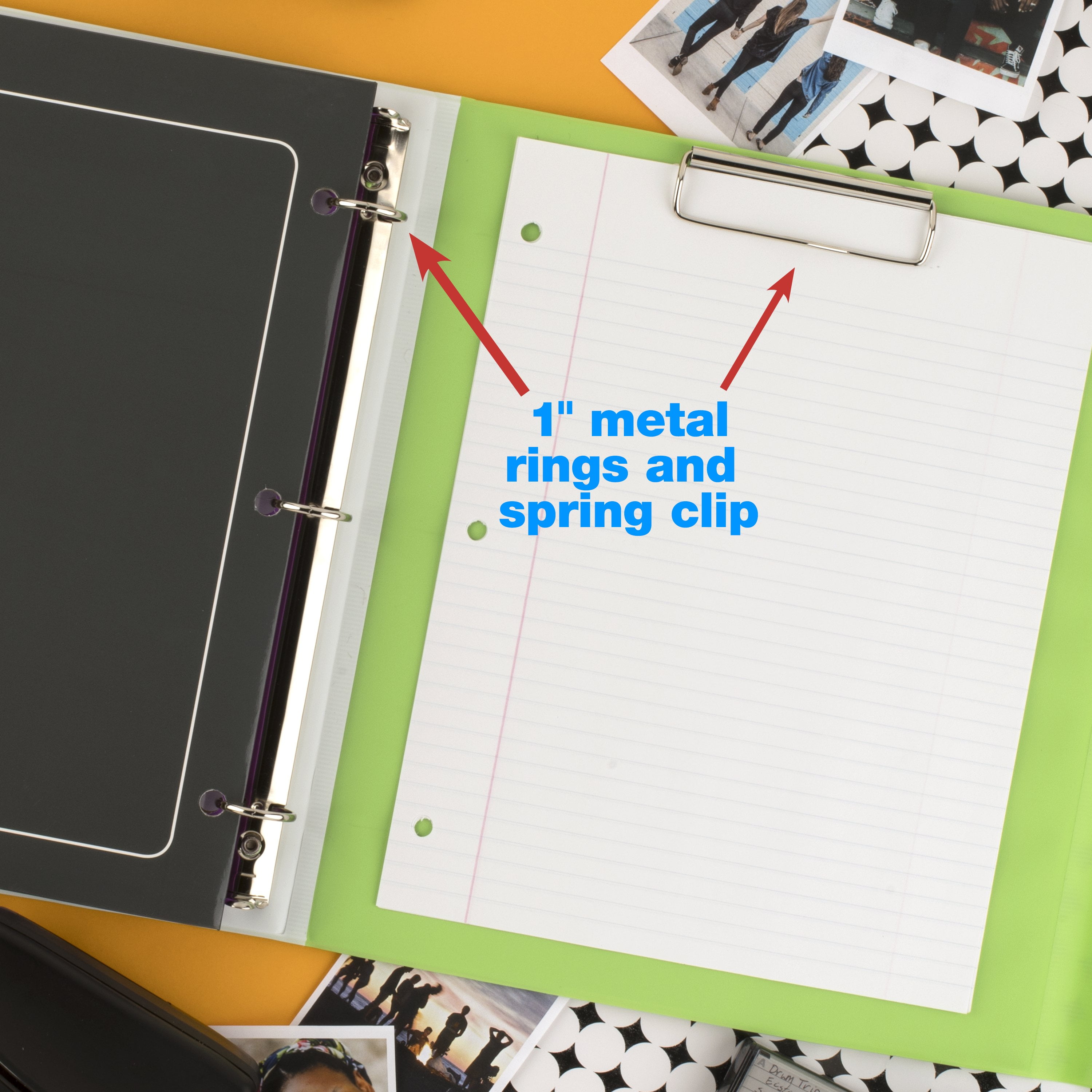 - 1” metal binder rings store folders and other 3-hole punched sheets