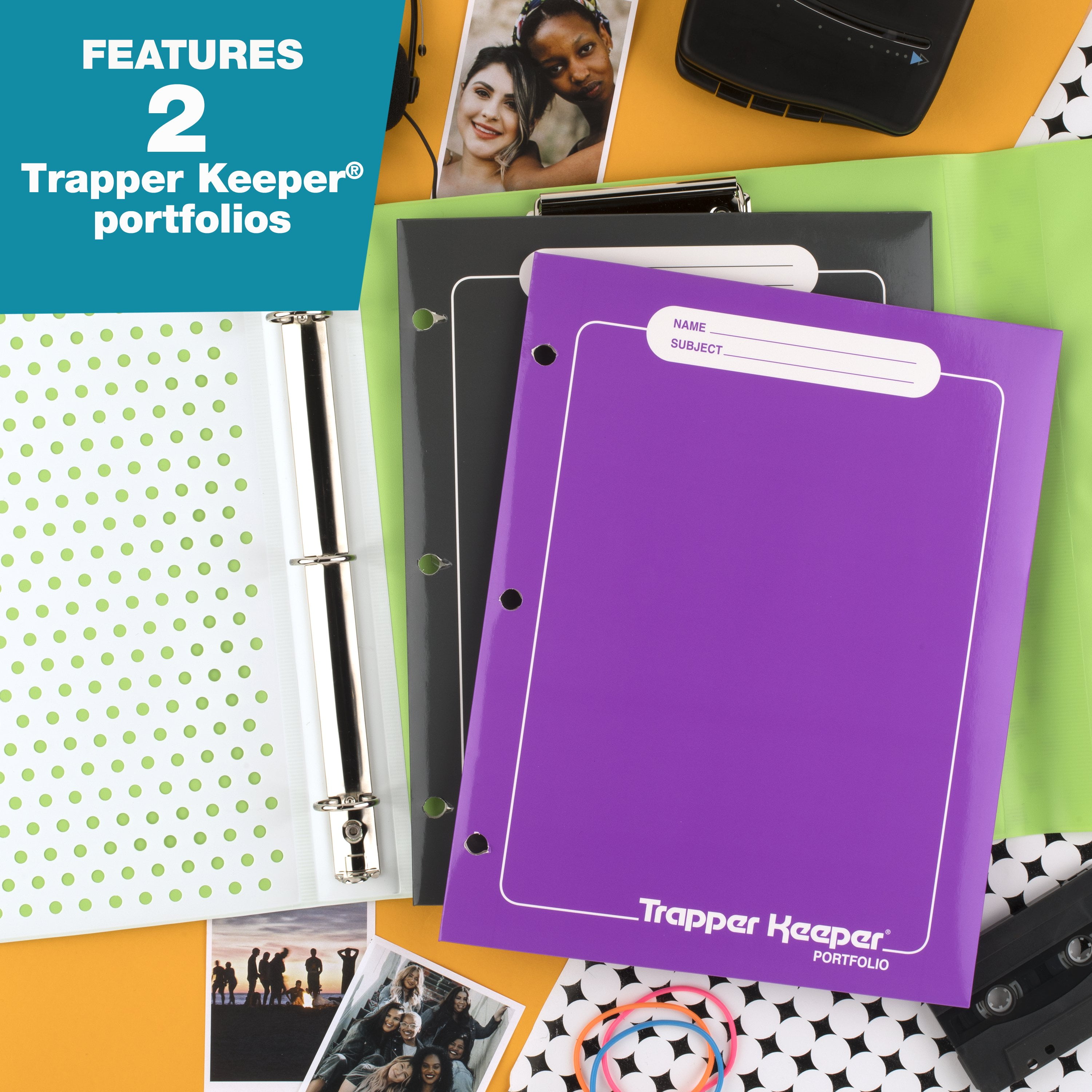 It’s time to get nostalgic! Remember leg warmers, bold colors, big hair and oversized blazers? The original Trapper Keeper is back to keep the 80s and 90s vibe alive! It includes many of the original features you know and love. All of your stuff stays trapped and secure inside with a hook and loop closure. The included folders keep loose papers in place with two vertical pockets. The folders have common stats are printed inside. Store the folders and other 3-hole punched sheets in the sturdy 1” round metal binder rings. A metal clip on the back secures loose papers and notes while on the go and an inside pocket is perfect for keeping hand-outs, assignments and extra paper close at hand.