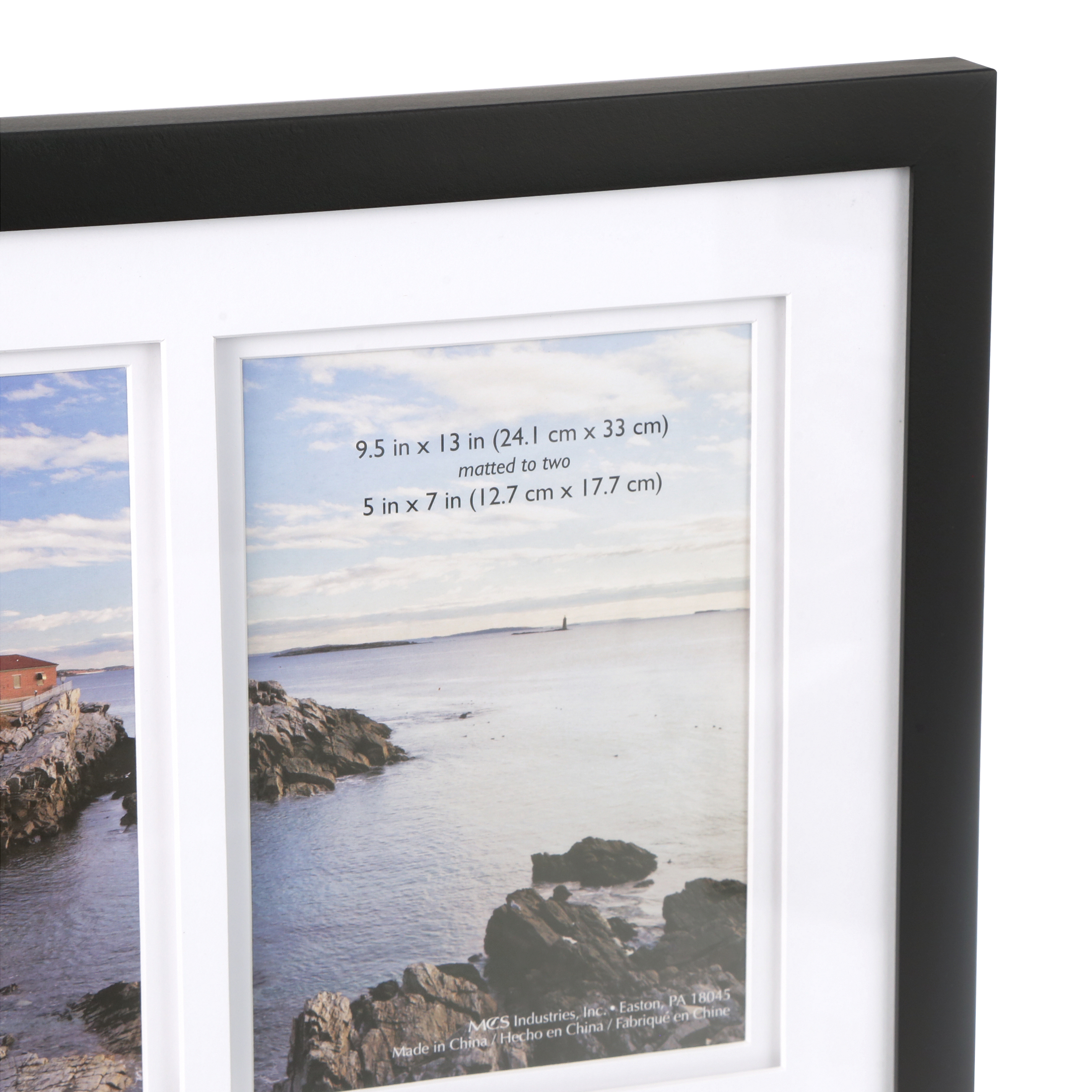 Put the different milestones in your life on display, and remember what is important with this Gallery Black 9.5" x 13" Two-Opening 5" x 7" Collage Frame. This versatile two-opening black frame will bring your favorite moments to life, providing a tasteful keepsake that is sure to fit the décor of your home or office. The outside dimensions measure 9.5 x 13 this gallery black collage frame also has the option of dividing the picture, matted to two, with space to fit (2) 5×7 photographs. Additionally, there are two metal triangle hangers firmly attached to the frames backers, allowing this picture frame collage to be displayed either horizontally or vertically, working with the direction of your image(s) and space within your home or office. Ideal for displaying one larger image, or a collection of two images side-by-side. The perfect placeholder for displaying in your home whatever is important to you and your family.