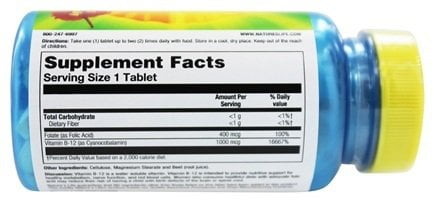 DescriptionThe Energy SupplementsHigh PotencyVegetarian Hypo-AllergenicQuality, Natural, SupplementsDietary SupplementNutritional Support for Natural Energy Production.Suggested UseAs a dietary supplement, one tablet daily.Other IngredientsMicrocrystalline cellulose, di-calcium phosphate, stearic acid, magnesium stearate, beet juice, pharmaceutical glaze and silica.Free from artificial colors and preservatives. Free from the common allergens yeast, wheat, soy and milk.WarningsKeep tightly closed in a cool, dry place. Keep out of reach of children.- ACTIVE ENERGY – Vitamin B12 is known as the "energy vitamin" for a reason. It helps convert food into the energy that fuels your cells and metabolism – MEMORY AND FOCUS – Vitamin B12 plays an important role in helping your nervous system function. Studies have shown it improves memory and focus, as well as your ability to learn – THE BETTER B12 – Natures Plus Vitamin B12 is made with methylcobalamin, the bioactive form of B12, making it easier for your body to absorb, making sure you get the most out of your supplement – HIGH POTENCY – Each tablet contains mcg Vitamin B12. – QUALITY MANUFACTURING – Our state of the art manufacturing facilities maintain adherence to superior standards and are FDA and NSF registered. All Natures Plus products are crafted with only safe, high-quality natural ingredients – NEW LOOK, SAME STANDARDS – As we transition to our new packaging, you may receive either the old or new bottle design. Rest assured that while the look may differ, our high-quality standards will never change.