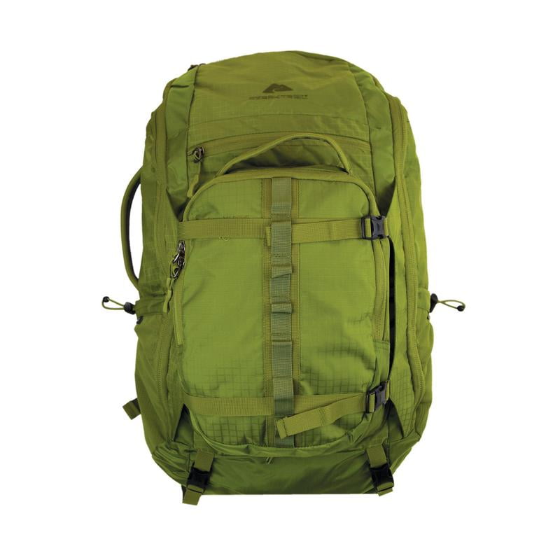 Pack up and head out on your next adventure with the Ozark Trail Himont 55L Multi-Day Travel Backpack. The fully-featured Ozark Trail Himont 55L Multi-Day Travel Backpack is designed with the traveler and adventure seeker in mind. This removable daypack provides additional storage and commuting options, perfect for sightseeing. Stowaway shoulder straps and waist belt make checking bags a breeze and dual exterior compression straps slim down your pack while securing your belongings. Plus, a large panel zip provides convenient access to the main compartment, while a bottom pocket stores a rain-fly to keep your travel pack dry. Get ready for wherever your journey takes you and gear up with the Ozark Trail Himont 55L Multi-Day Travel Backpack.Ozark Trail Himont 55L Multi-Day Travel Backpack: