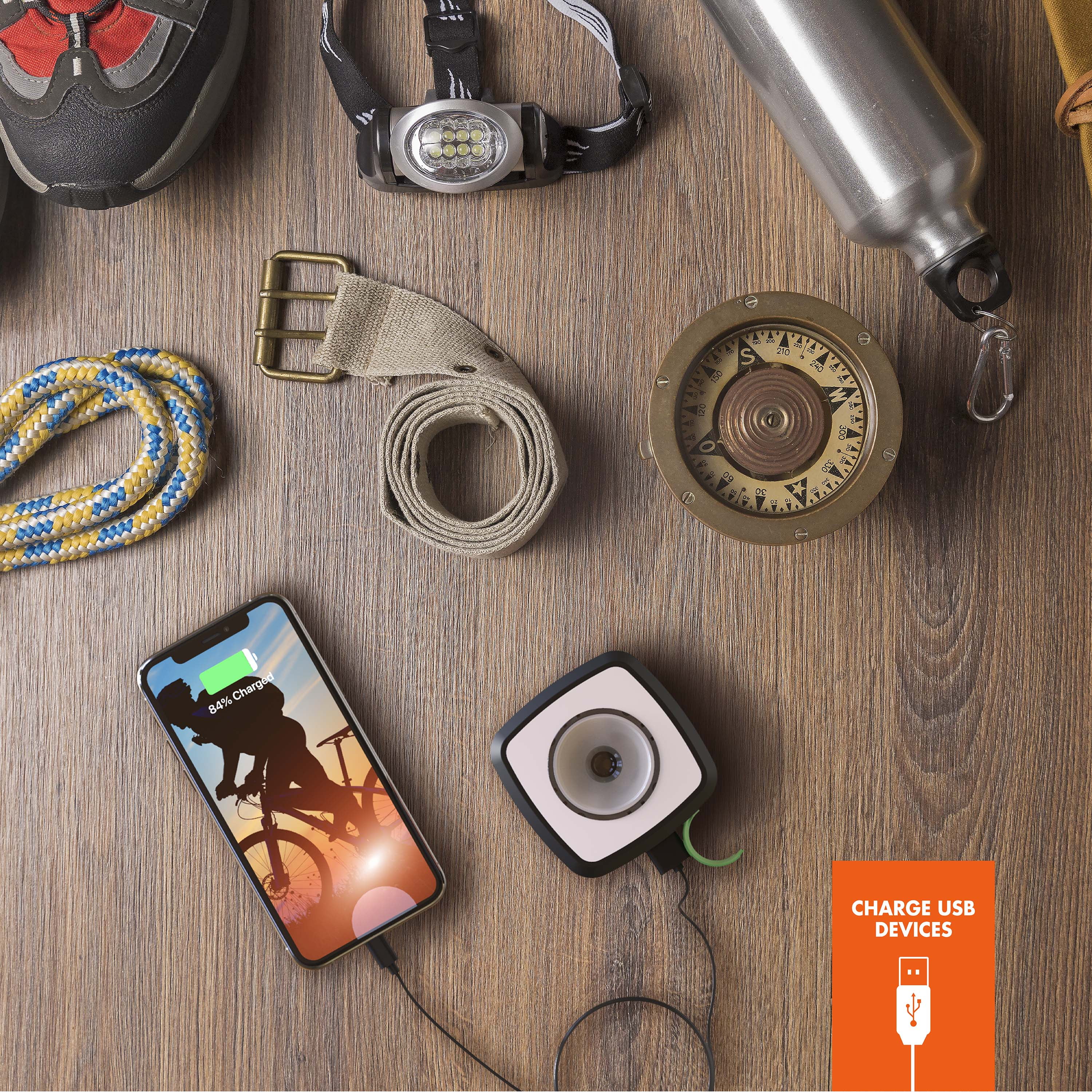 - CHARGE UP: Via the solar panel or included Micro USB cable; USB output can also charge your devices