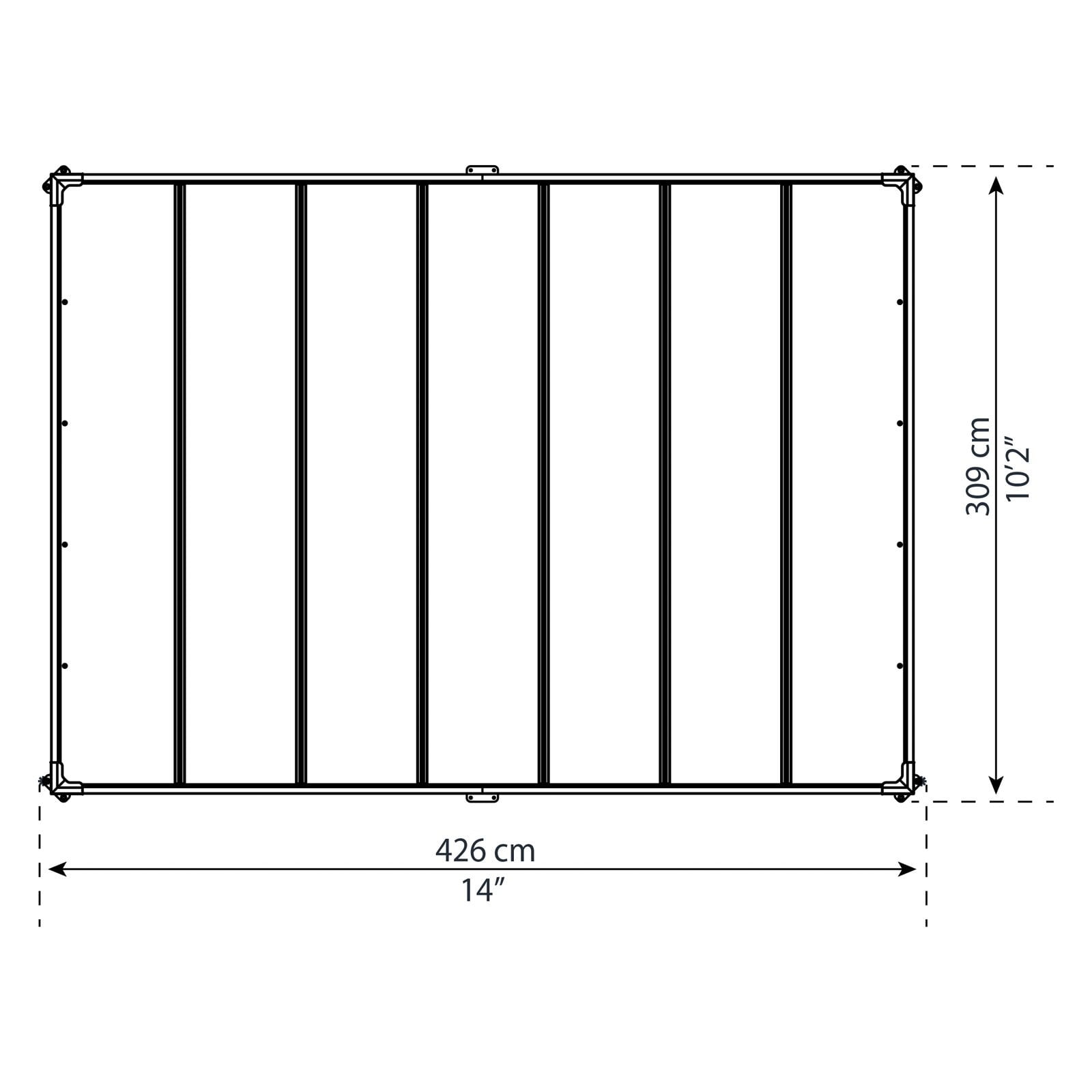 Palram’s Milano 10′ x 14′ Gazebo enhances your outdoor gathering space by providing a cool retreat from hot summer days or a dry outdoor oasis on rainy days. Integrated channels for hanging the optional curtain or mosquito net allows you to give your gazebo an outdoor room-like feel. Gutters and downspouts channel water towards the four corners and away from the sides to keep you dry. The stylish and durable design features a corrosion resistant powder coated aluminum frame in basalt-gray and 6mm twin-wall polycarbonate roof panels with bronze glazing. The twin-wall polycarbonate roof panels block harmful UV rays while allowing diffused light to filter through. It is perfect for hosting a dinner party, BBQ or enjoying the fresh air outdoors.
