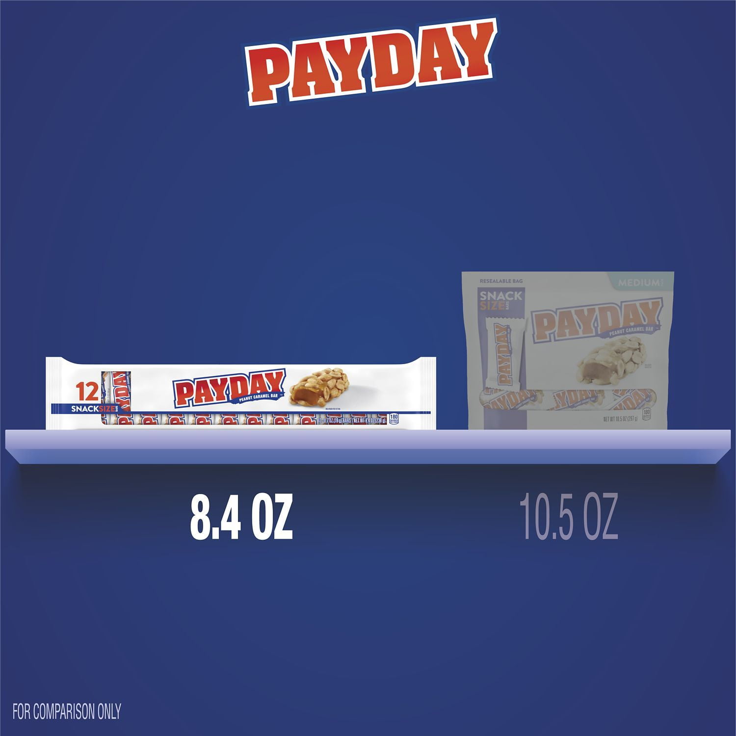 - Contains twelve (12) 0.7-ounce PAYDAY Peanut Caramel Snack Size Candy Bars