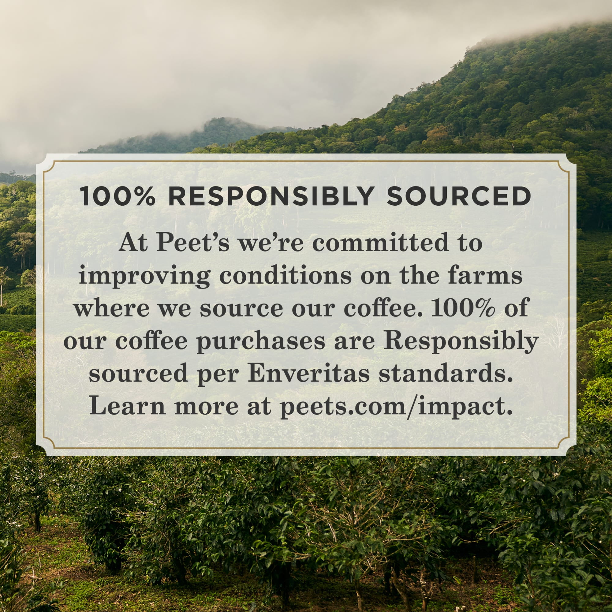 - Sourcing with Impact: The coffee you buy can impact the welfare of the people and planet. Peet’s is actively engaged in driving positive impact in communities where our coffees are grown.