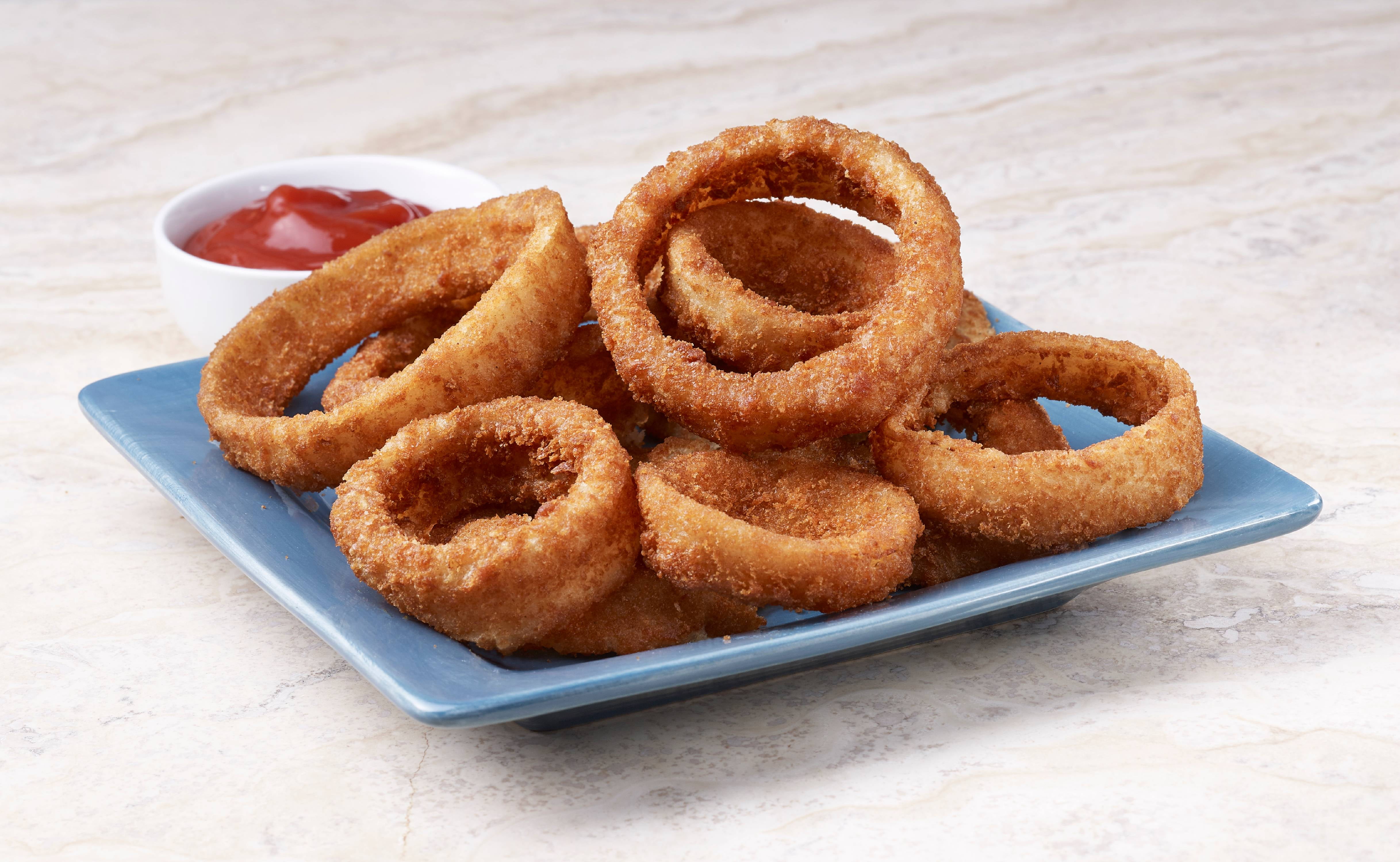 - Thick-cut, real onion rings (not chopped and formed onion pieces)