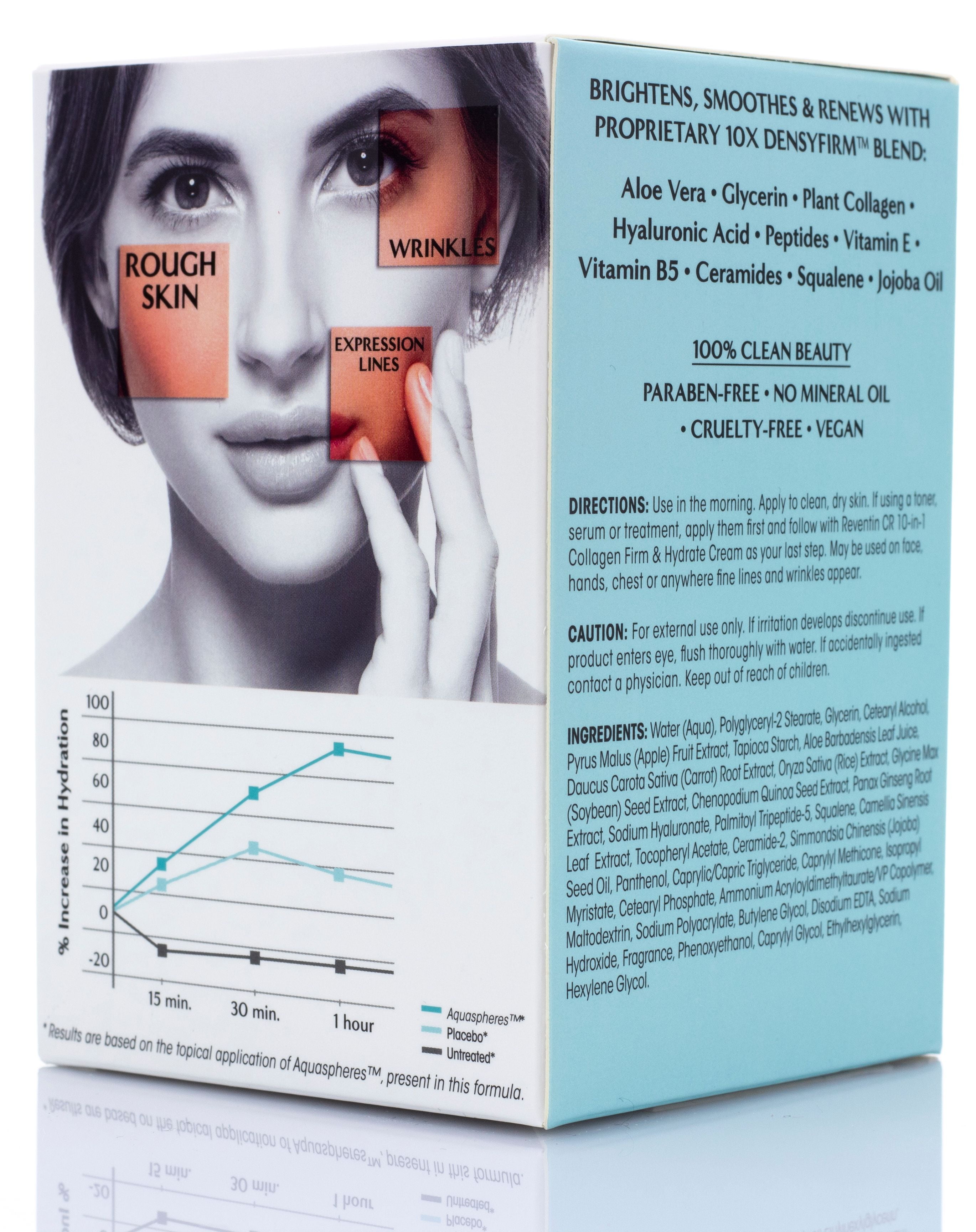Renew your skins natural beauty with Reventin Clinical Results Collagen Cream face moisturizer for dry skin. Target dry skin and texture, and diminish expression lines around your lips and forehead with plant-based collagen peptides, ceramides, and our innovative 10x Densyfirm blend. Brighten and soothe dehydrated, wrinkle-prone skin by using this moisturizing cream on your face, hands, chest, or anywhere that needs a boost.