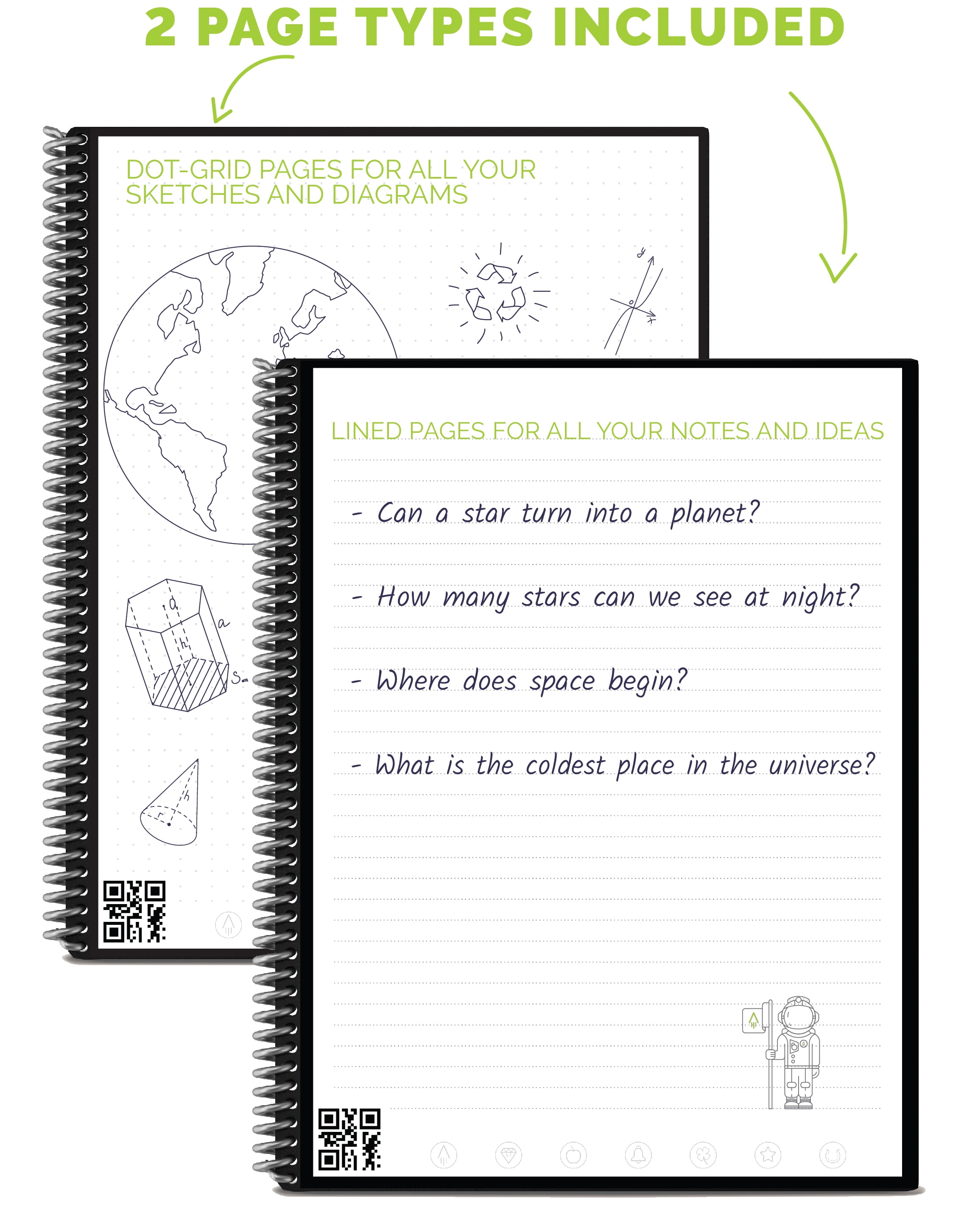 - Includes 1 Rocketbook Core Executive Size (6" x 8.8") Notebook, 1 Pilot Frixion Pen, and 1 Microfiber Cloth