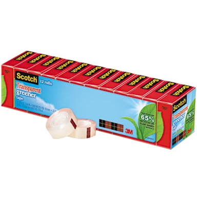 Scotch 2157ss 3/4" X 250" Scotch Transparent Tape 2 Count 6 pack 12 CountWhen you have a million and one things to do, there’s one tape to get-Scotch Transparent Tape. It’s clearly strong-holds things together in an instant; keeps things together for a long time. Clearly multi-purpose-ideal for all the jobs you need to get done. And clearly…clear-using 3M adhesive technology, it goes on transparently and won’t yellow with age. Scotch Transparent Tape Refills fit into all standard dispensers, glide off the roll smoothly, and cut easily-without wasted tape. Whatever you need to get done, wherever you are-home, work or school-Scotch Transparent Tape Refill Rolls are clearly ready to go to work.Classic glossy-finish. Ideal for multi-purpose sealing and label protection. Instant adhesion, excellent holding power. Crystal clear. Ideal on shiny surfaces. Pulls off the roll smoothly and cuts easily. Strong, secure, wont yellow with age. Photo safe. Made in the USA with globally sourced materials. Makes a great complement to decorative gift-wrapping paper. Easy-to-apply design that doesn’t dry out or yellow.