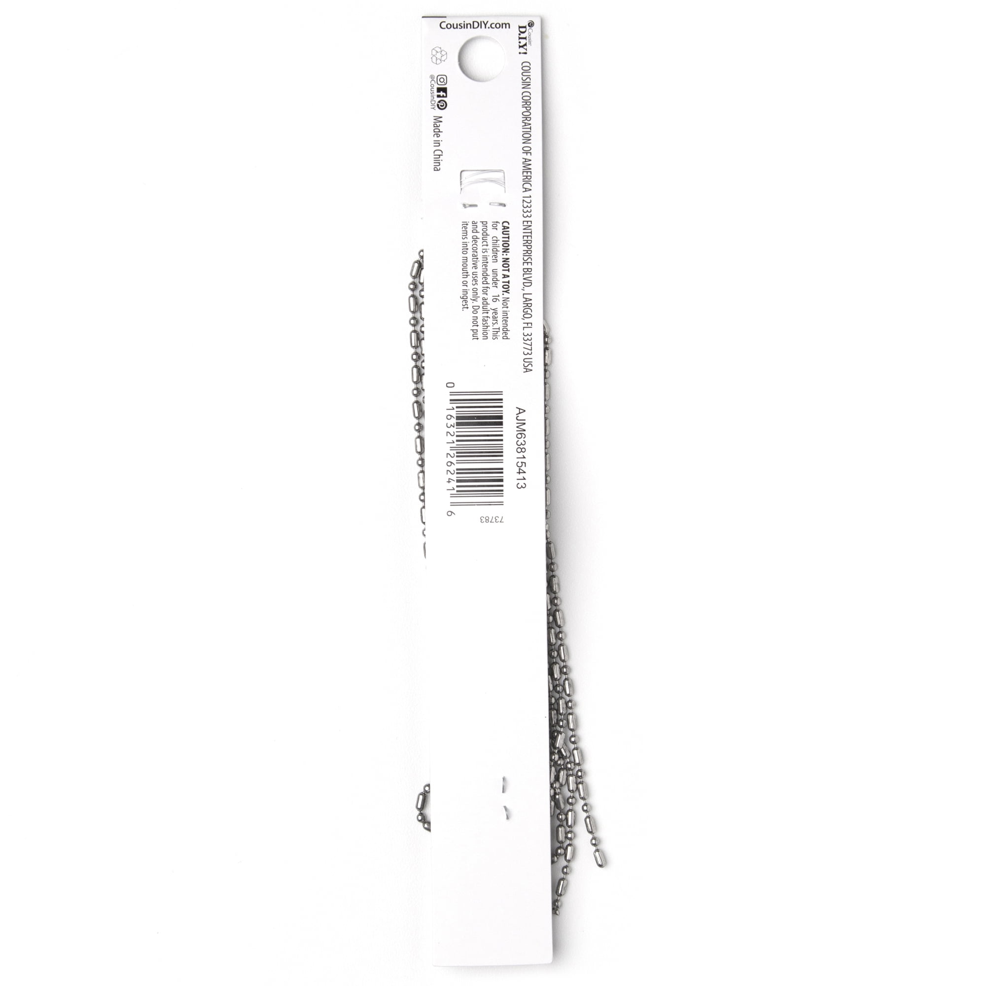 This fantastic silver oval ball chain from Cousin DIY provides the perfect base for your custom jewelry creations. The chain is 70.9 inches long. Use this chain for layering with other necklaces, wearing alone or as a chunky wrap bracelet, the possibilities are endless. No matter what your design is, our line of jewelry components will help you create beautiful, handmade, professional quality fashion jewelry.Cousin 70.9in Silver Oval Ball Chain