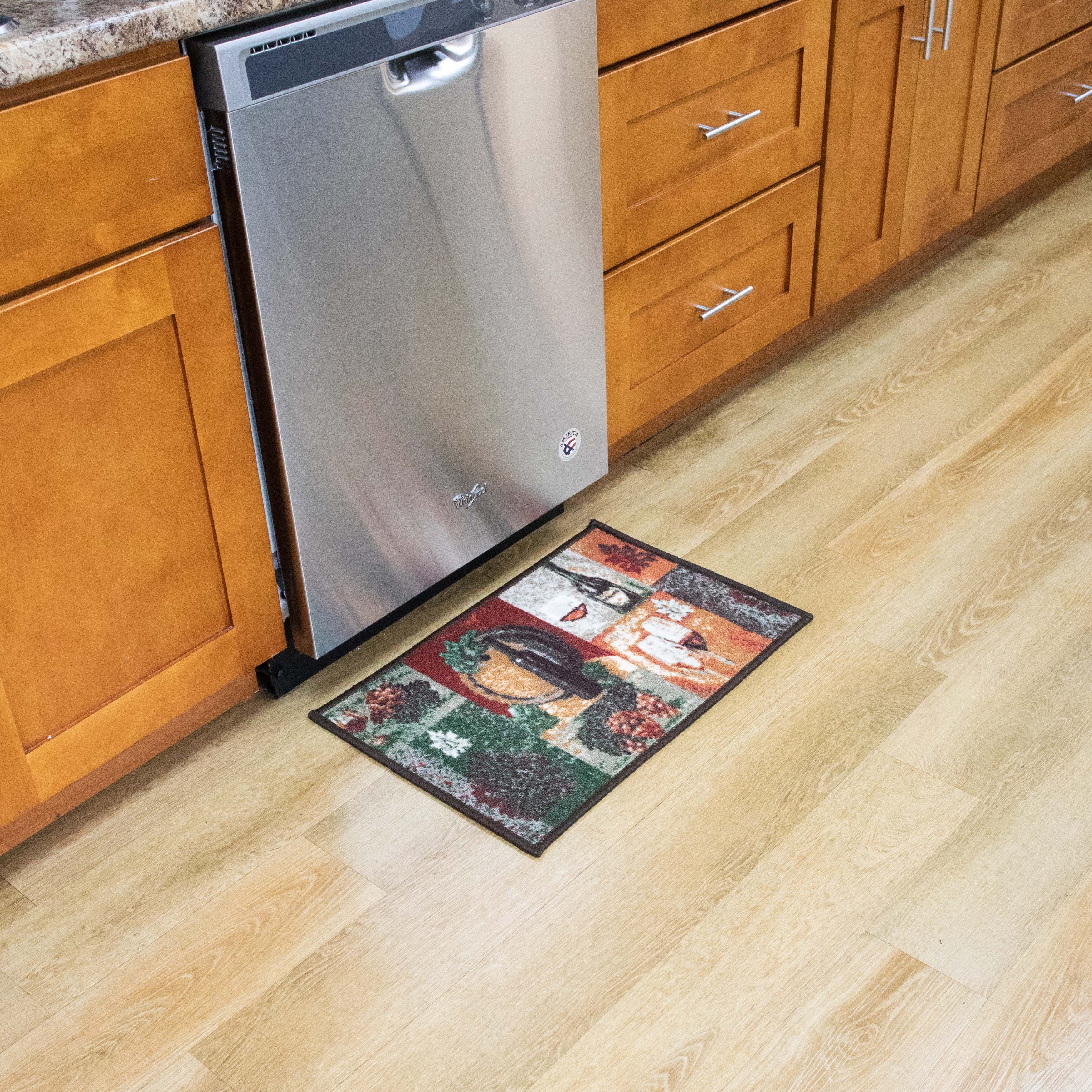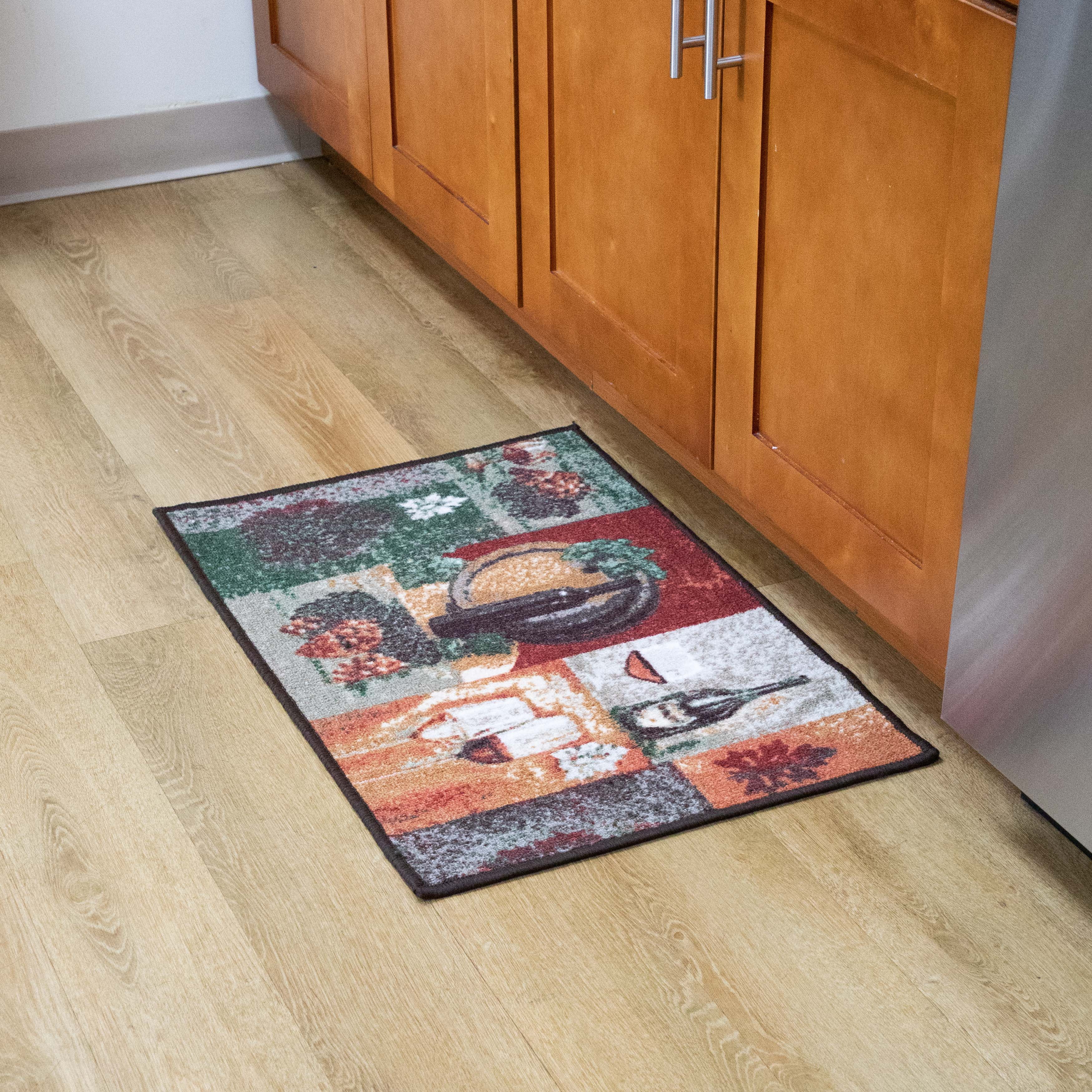 Sloppy Chef Printed Kitchen Area Rug, (2 piece set) Non-Skid Latex Backing PREMIUM QUALITY: This kitchen rug is made with a non-Skid latex rubber backing for safety. The soft surface is comfortable and easy to work on even with bare feet. LIGHT QUALITY: This nylon kitchen rug is made with 100% Nylon for better stain resistance and durability. It is lightweight and Durable. MULTI-PURPOSE: Printed nylon kitchen rugs are suitable for any use. Can be used as kitchen rugs or as a area rug, and they have a style that will be a focal piece for any room in your home. GREAT DECORATION: This kitchen rug has a nice look and fits nicely into your kitchen. Perfect for any chef or the person in your home who loves to cook. SIZE & USAGE: This 2-Piece set is suitable for placement in the bathroom, by the doorway, dining room, along with an entryway in the bedroom or as an area rug anywhere in your home or office. CARE: Wash separately in cold water, gentle cycle, and use a mild detergent.