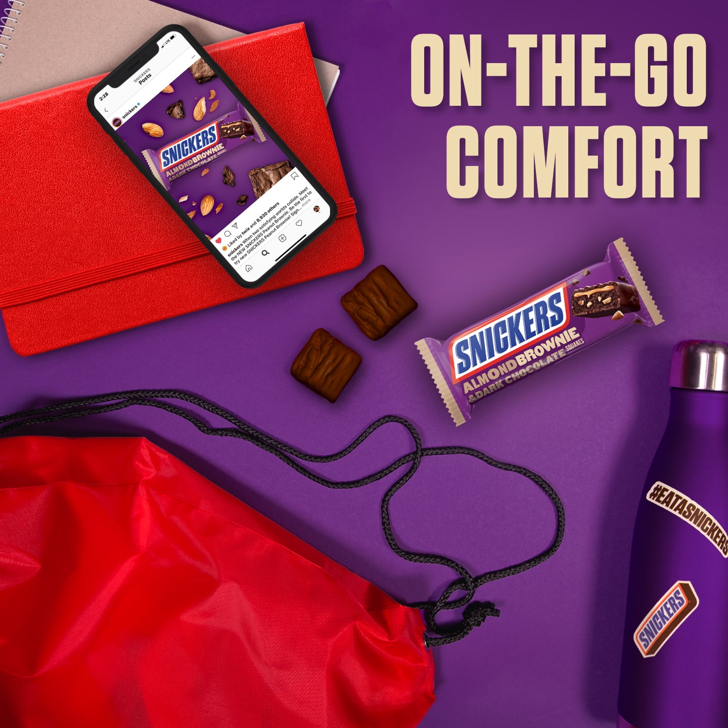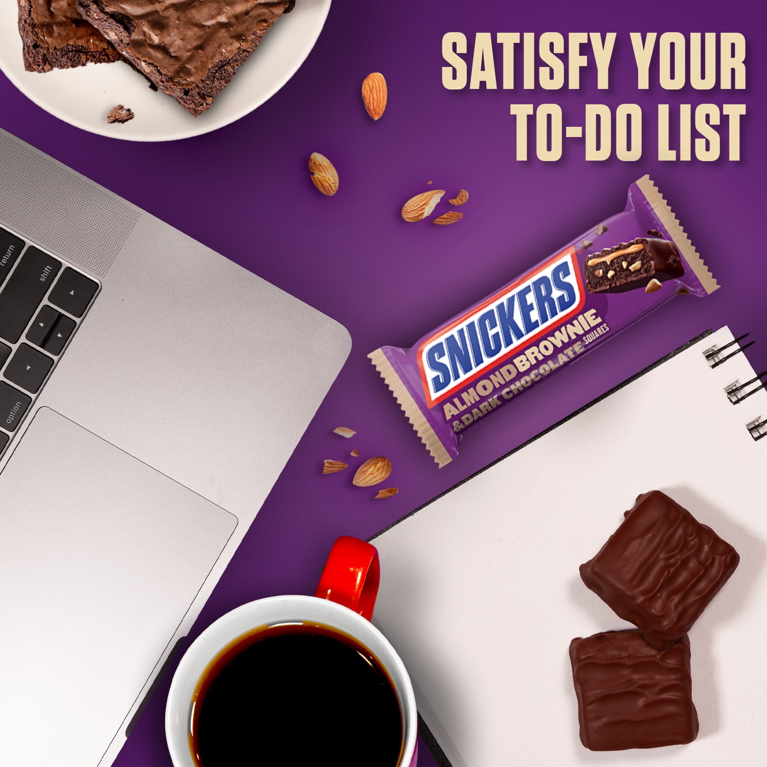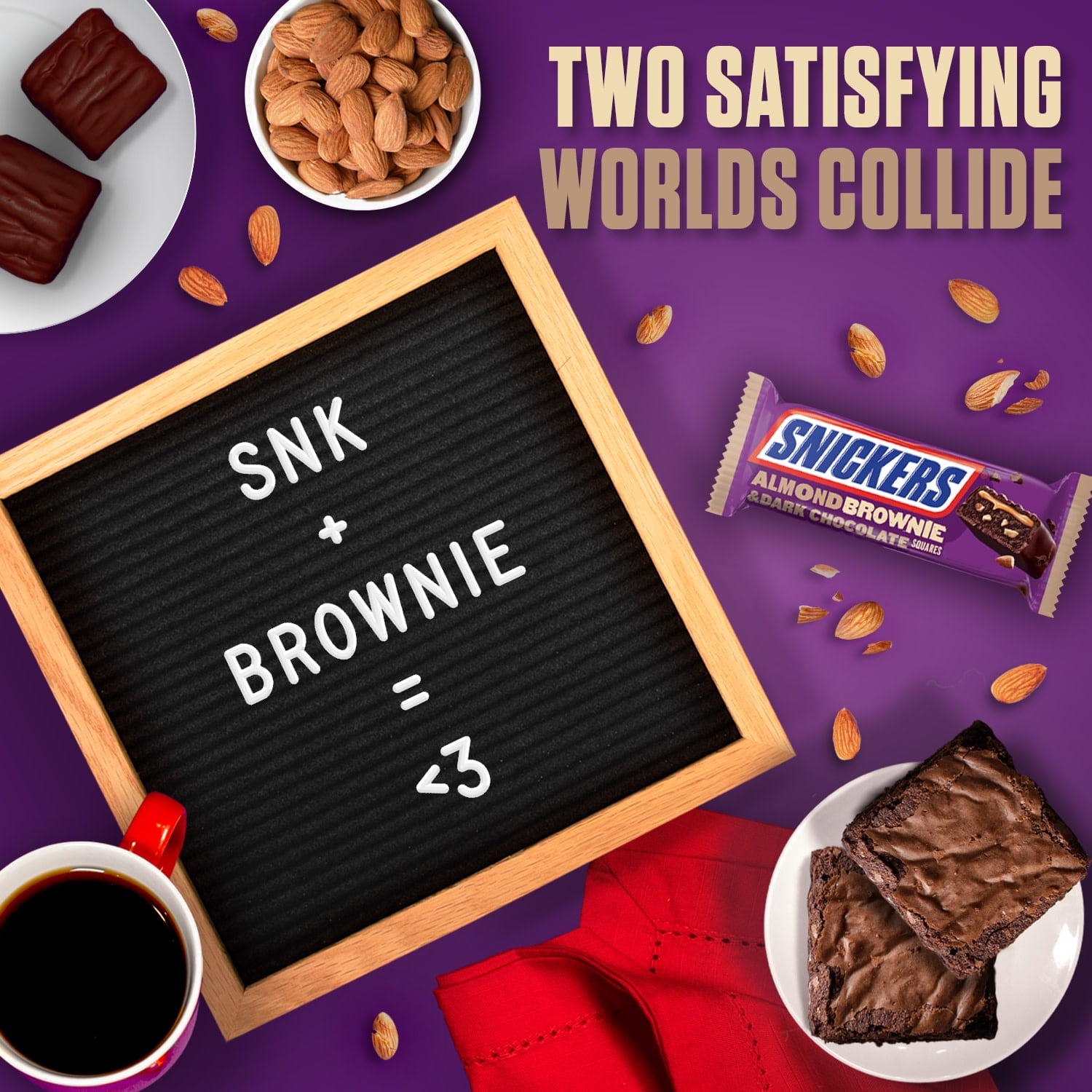 - Break out the satisfying, comforting flavor of SNICKERS Dark Chocolate Almond Brownie chocolate candy bars at your desk for a delicious midday treat