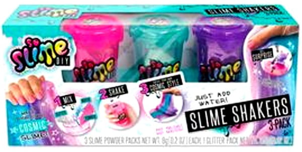 Make your own shimmery slime with a surprise! This slime kit makes it fun and easy to create custom slime without a mess. Combine slime colors, confetti, glitter and surprise figurines for the coolest slime around. Includes everything you needjust add water! No glue required. Includes 3 slime powder colors. Simply pour one slime powder pack, glitter and water into the shaker cupthen shake! You can mix and combine slime colors to create your own rainbow! Add one of the surprise figurine into the slime. Which 3 surprises figures will you get?! Styles and colors will vary. Includes 3 Slime Powder Packs, 1 Glitter Pack, 2 Confetti Packs, 3 Shaker Containers, 3 Surprise Figures, and Instructions. Ages 6+ Made In China Notice: Colors and styles of contents may vary. Conforms to ASTM D-4236. Do not put contents near eyes or mouth. Do not eat or ingest contents. Wash hands after use. Contents contain colorants that may stain certain surfaces. Read all instructions before use.So Slime DIY Slime Shakers 3-Pack [Cosmic]
