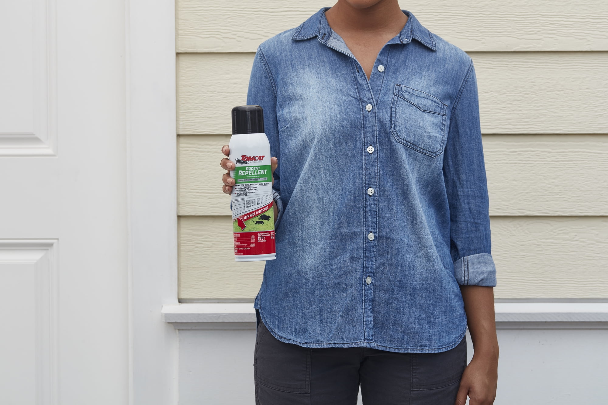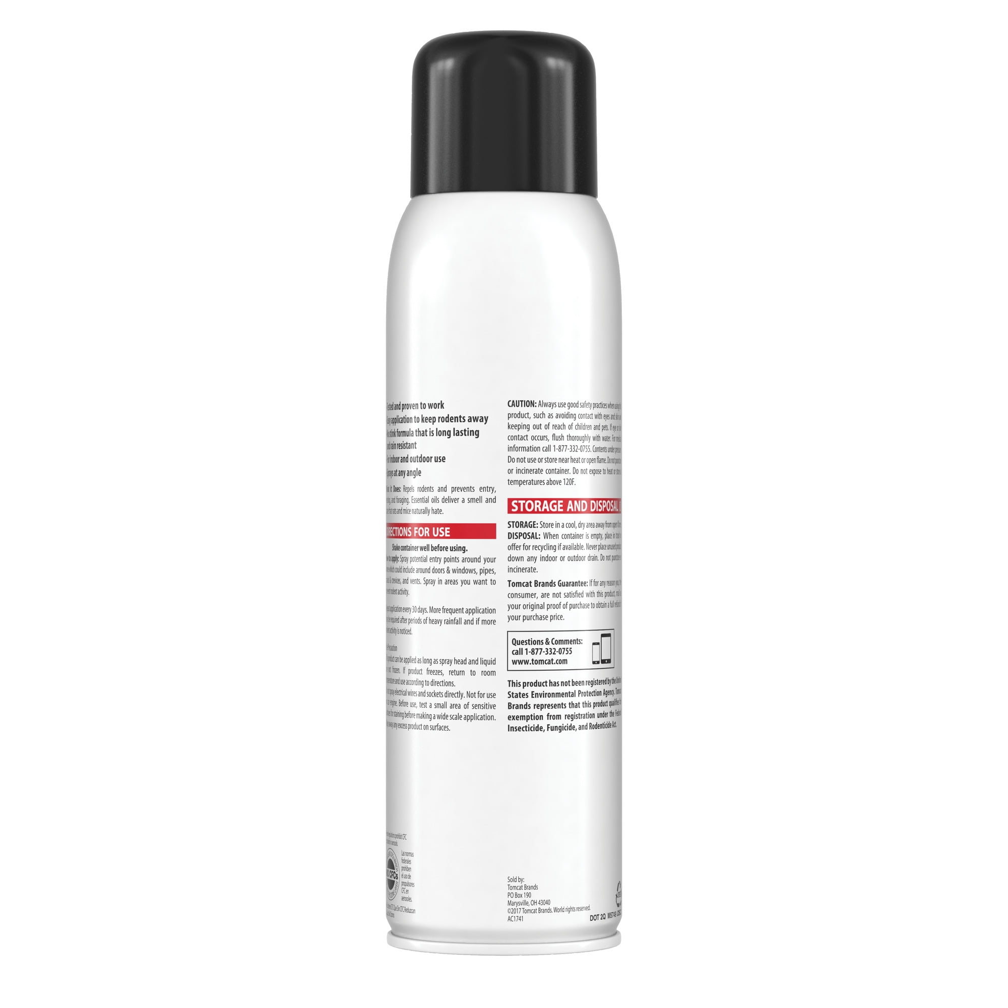Tomcat® Repellents Rodent Repellent Continuous Spray is engineered to safely and effectively deter mice and rats from entering homes. Featuring a no stink formula that is long lasting and rain resistant, this easy-to-use, continuous spray formula is tested and proven to prevent rodent entry, nesting and foraging. Through essential oil technology it delivers a smell and taste that rats and mice naturally hate, while remaining safe for use around kids and pets, giving you both protection and peace of mind.