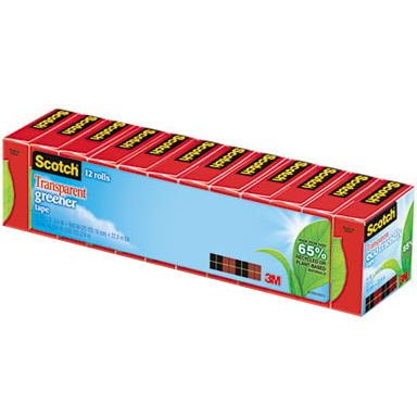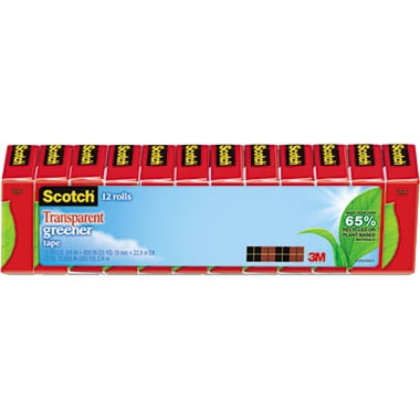 Scotch Greener Transparent Office Tape is an even more environmentally friendly version of the original glossy tape. It contains recycled or plant-based material and is crystal-clear for a professional appearance. Instant adhesion delivers excellent holding power for your most critical taping tasks. Clear when applied, it doesn’t yellow with aging. Tape pulls off the roll smoothly and cuts easily. It is ideal for multipurpose sealing, label protection, general-purpose wrapping and mending. Tape is also photo-safe (determined in accordance with ISO Standard 18916).Scotch Greener Transparent Office Tape is an even more environmentally friendly version of the original glossy tape. It contains recycled or plant-based material and is crystal-clear for a professional appearance. Instant adhesion delivers excellent holding power for your most critical taping tasks. Clear when applied, it doesn’t yellow with aging. Tape pulls off the roll smoothly and cuts easily. It is ideal for multipurpose sealing, label protection, general-purpose wrapping and mending. Tape is also photo-safe (determined in accordance with ISO Standard 18916).