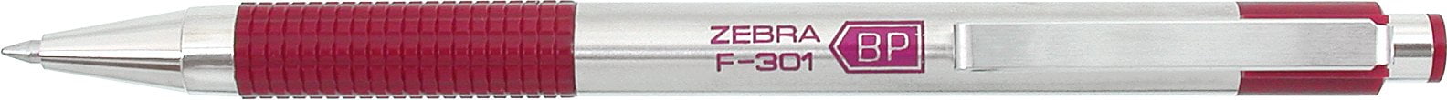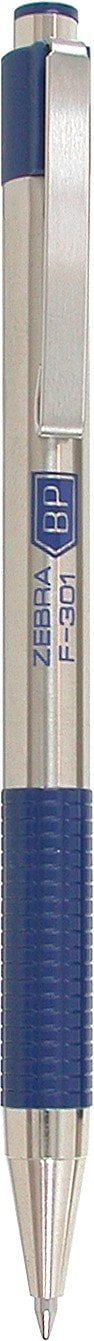 Whether you need something sophisticated for a business meeting or a durable tool that can withstand the elements of the job site, Zebra F-301 steel writing instruments are the answer to your writing needs. Experience high performance writing with the Original Stainless Steel Ballpoint Pen. The F-301 Series features a sophisticated appearance housed in a rugged steel body for lasting performance. This sleek retractable ballpoint pen is reflilable for continued use. The F-301 steel ballpoint series also includes a textured grip for a more controlled writing experience. Ideally sized for perfect pocket transportation, it features a metal clip for a secure clasp. Pair this pen with other great writing instruments from Zebra, such as technical pens, gel pens, rollerball pens, fountain pens, mechanical pencils, markers, highlighters and more!