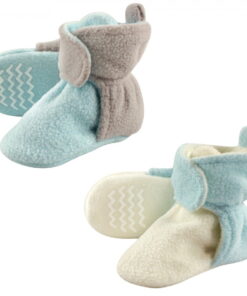 Hudson Baby Baby and Toddler Cozy Fleece Booties 2pk, Mint Gray, 4 Toddler