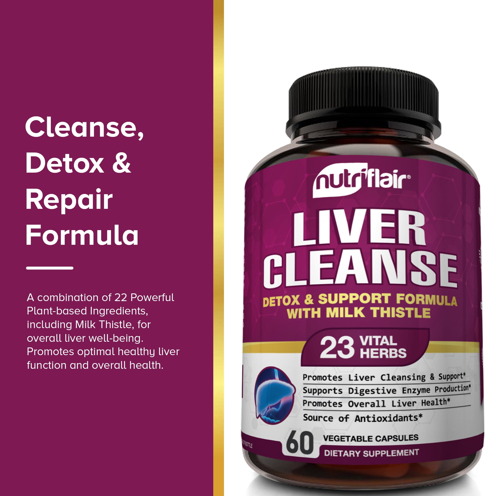 NutriFlair Liver Support Supplement with Milk Thistle Natural Detox Cleanse 60 Vegetable Capsules