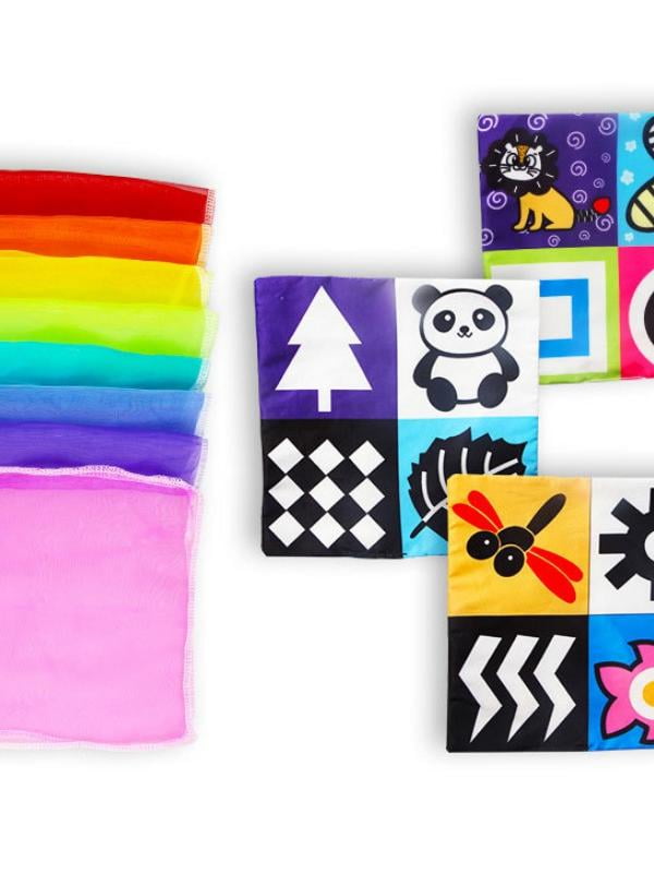 MarinaVida My First Baby Tissue Box,Square Sensory Toys Juggling Rainbow Dance Scarves for Toddler Infants