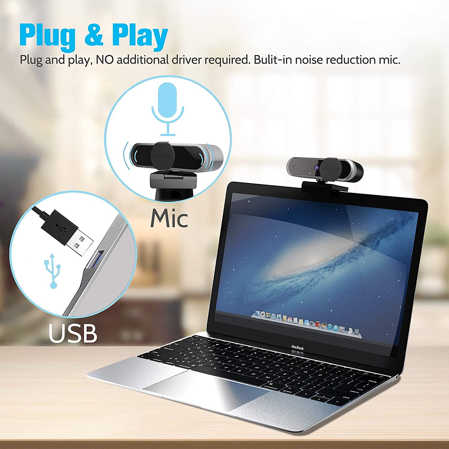 - BUILT-IN NOICE REDUCTION MIC – Web Camera is equipped with omni-directional noise reduction mic which filters out background noise to offers a pure and clear sound during video time, which is feeling like face to face to chat with someone.