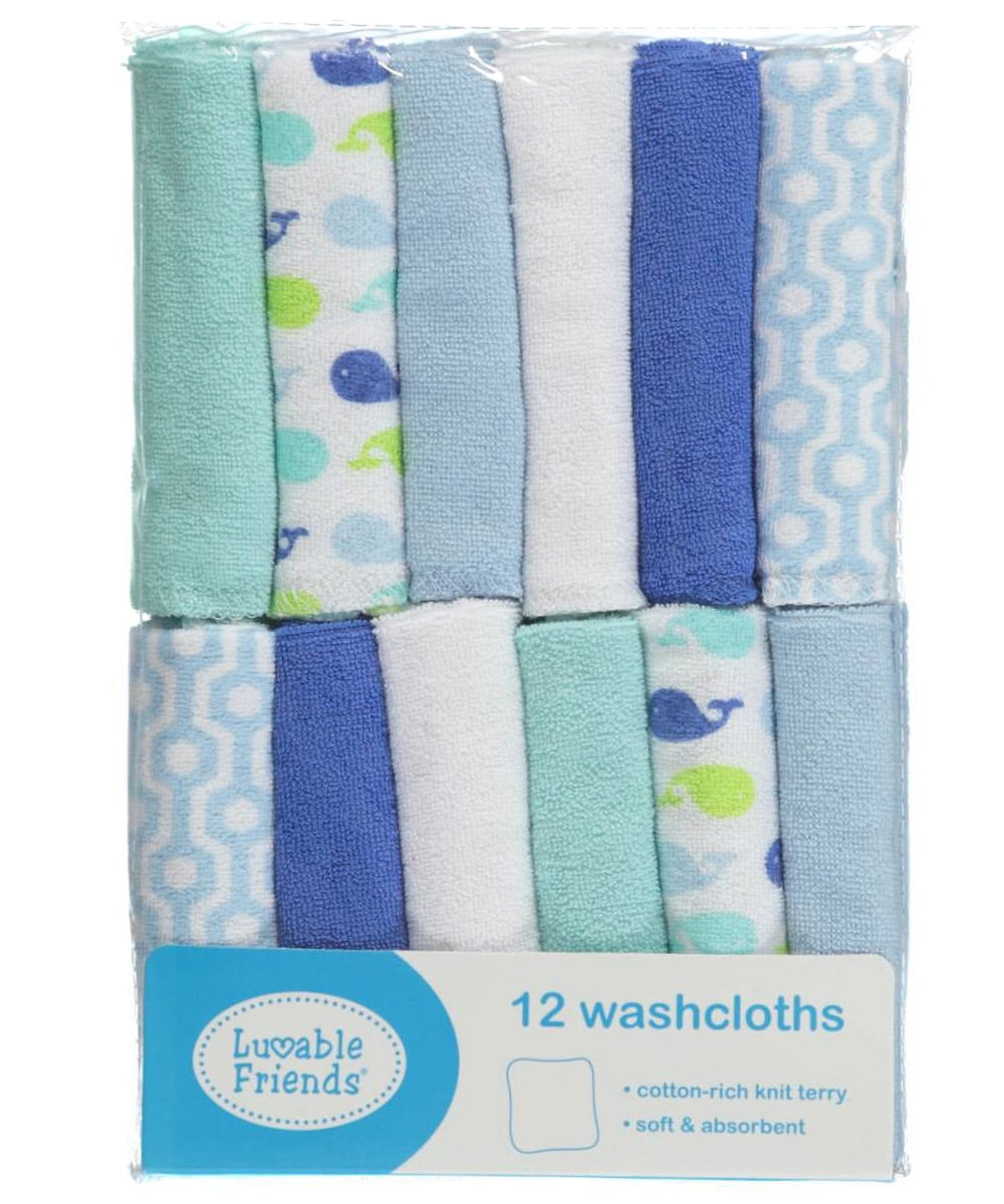 Luvable Friends Baby Boy Cotton Rich Washcloths, Boy Whale, One Size