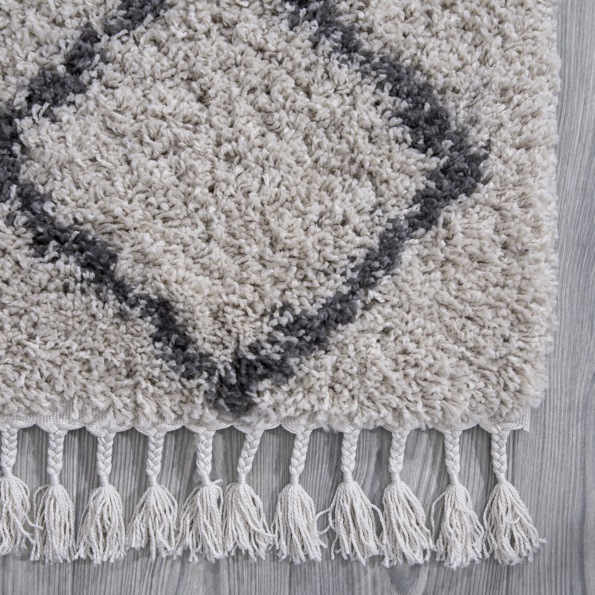 Better Home & Garden Diamond Trellis Fringed Shag Rug, 5’3′ x 7′, White