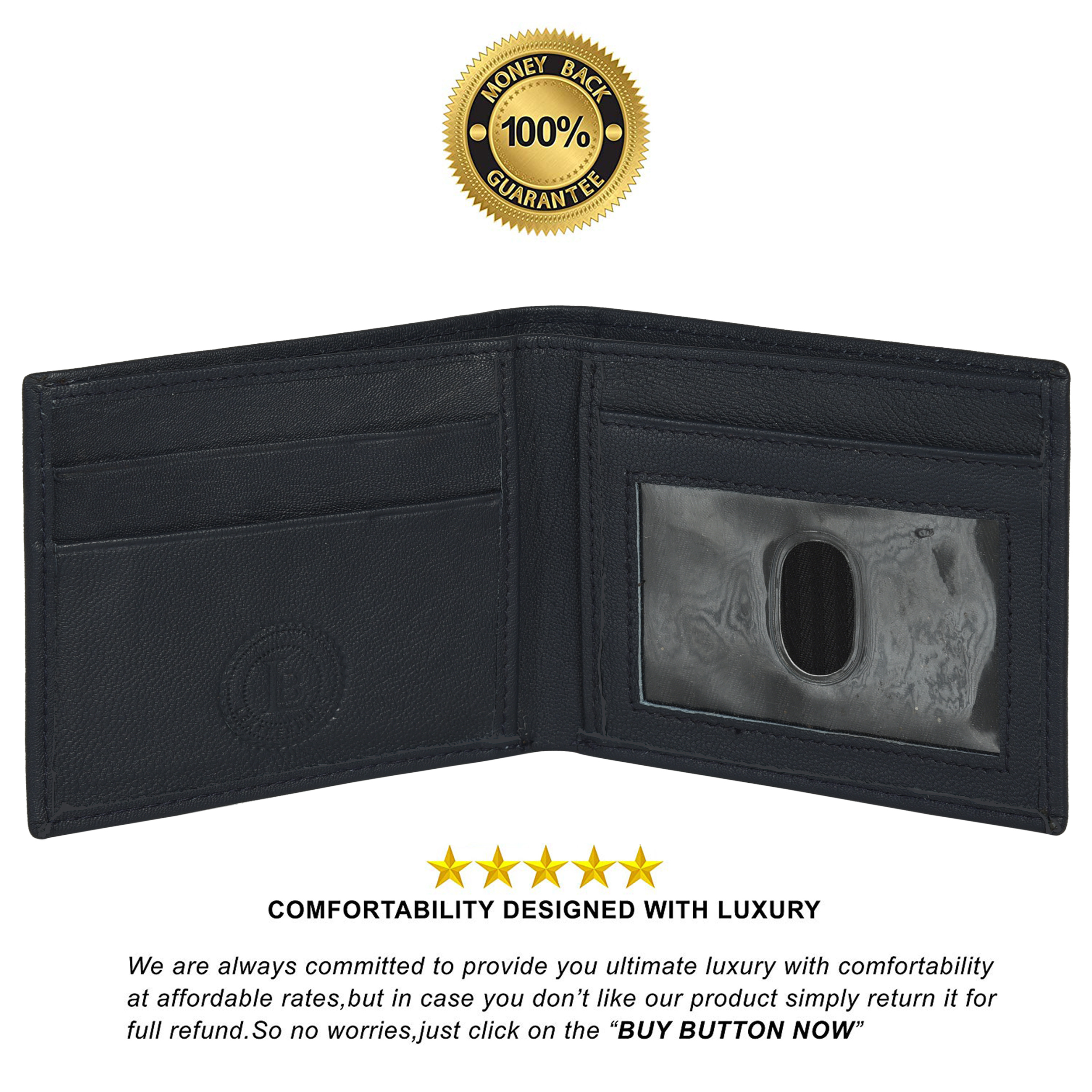 Mens Soft Genuine Leather Slim ID Bifold Wallet 60 (C) Black