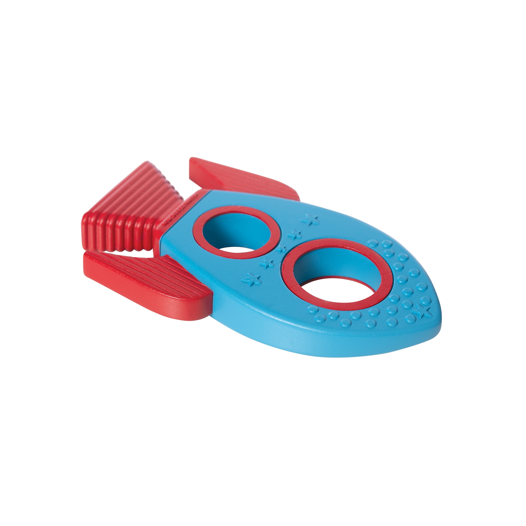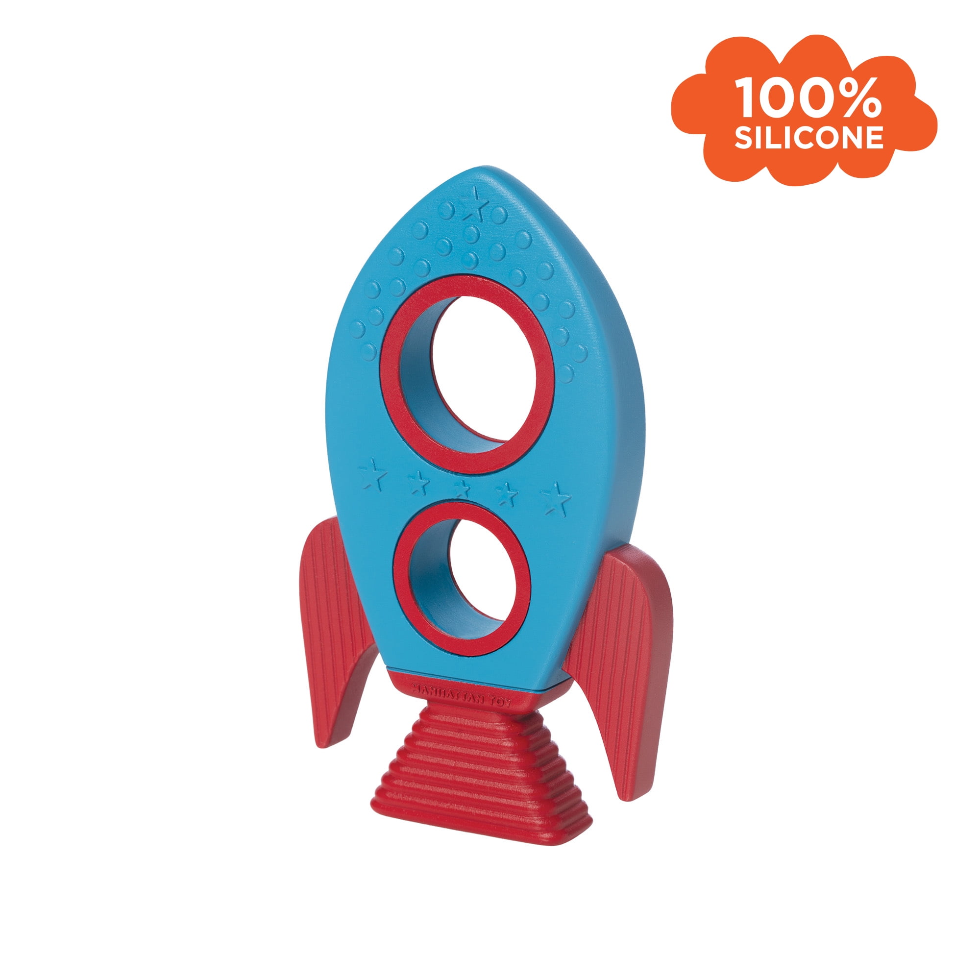 - 100% silicone bi-color teether features the shape of a spaceship rocket that will instantly attract baby’s attention
