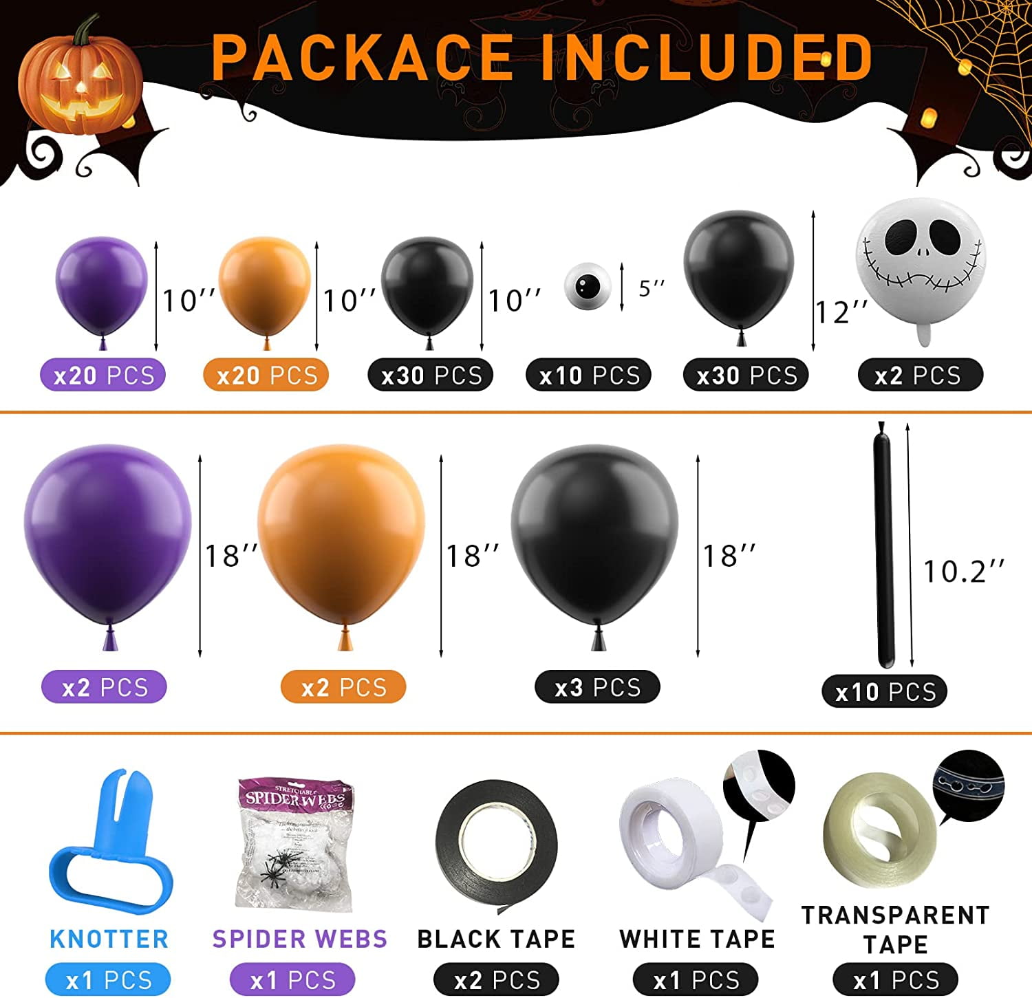 145Pcs Halloween Balloons Garland Arch Kit, Black Orange Purple Balloons Spider Balloons, Long Balloons for Halloween Theme Party Background Classroom Decorations