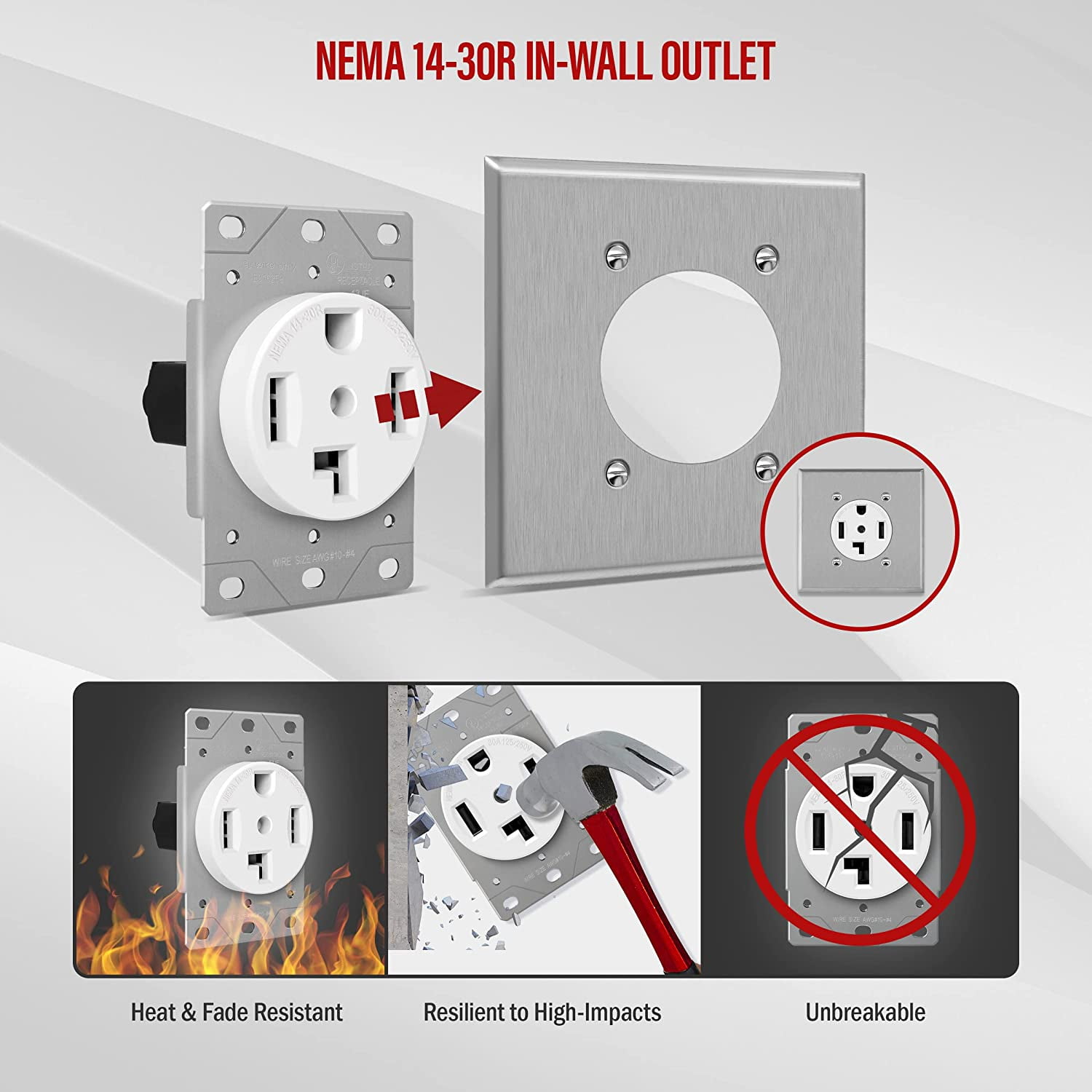 ENERLITES 66300 30A Electrical Dryer Outlet | NEMA 14-30R, Outdoor/Indoor, Flush Mount Receptacle, 3-Pole, 4 Wire, (10,8,6,4) AWG, Industrial Grade, 125/250V, 66300-W | White