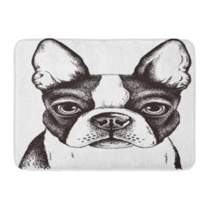 SIDONKU Black and White Sketch of Fawn Boston Terrier Face Dog Puppy Cute Doormat Floor Rug Bath Mat 23.6×15.7 inch