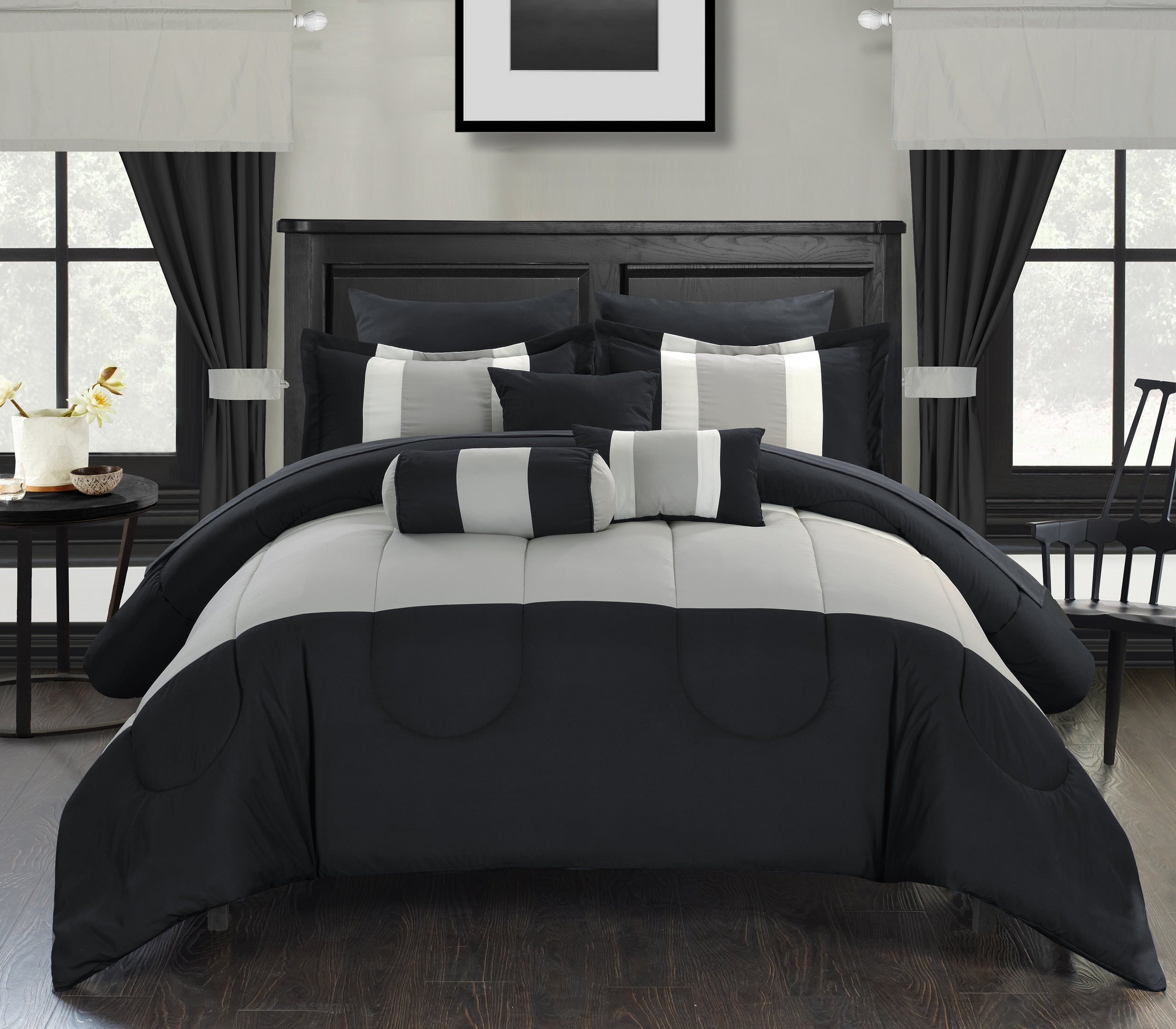Chic Home Whitehall 20-Piece Solid Color Comforter Set, King, Black