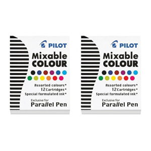 2 BOXES: Pilot Parallel Pen Ink Refills for Calligraphy Pens, Assorted Colors, 12 Cartridges per Pack (77312)