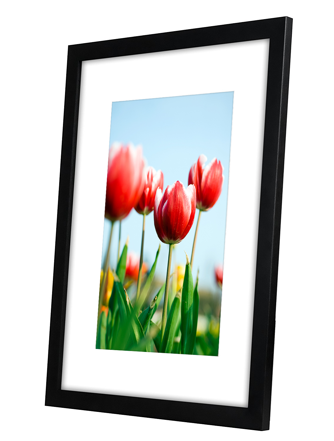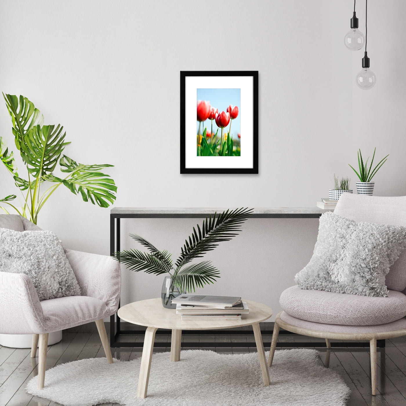 - This 12×16 inch frame has a sleek design, and includes a white acid-free mat with an 8×12 inch opening.