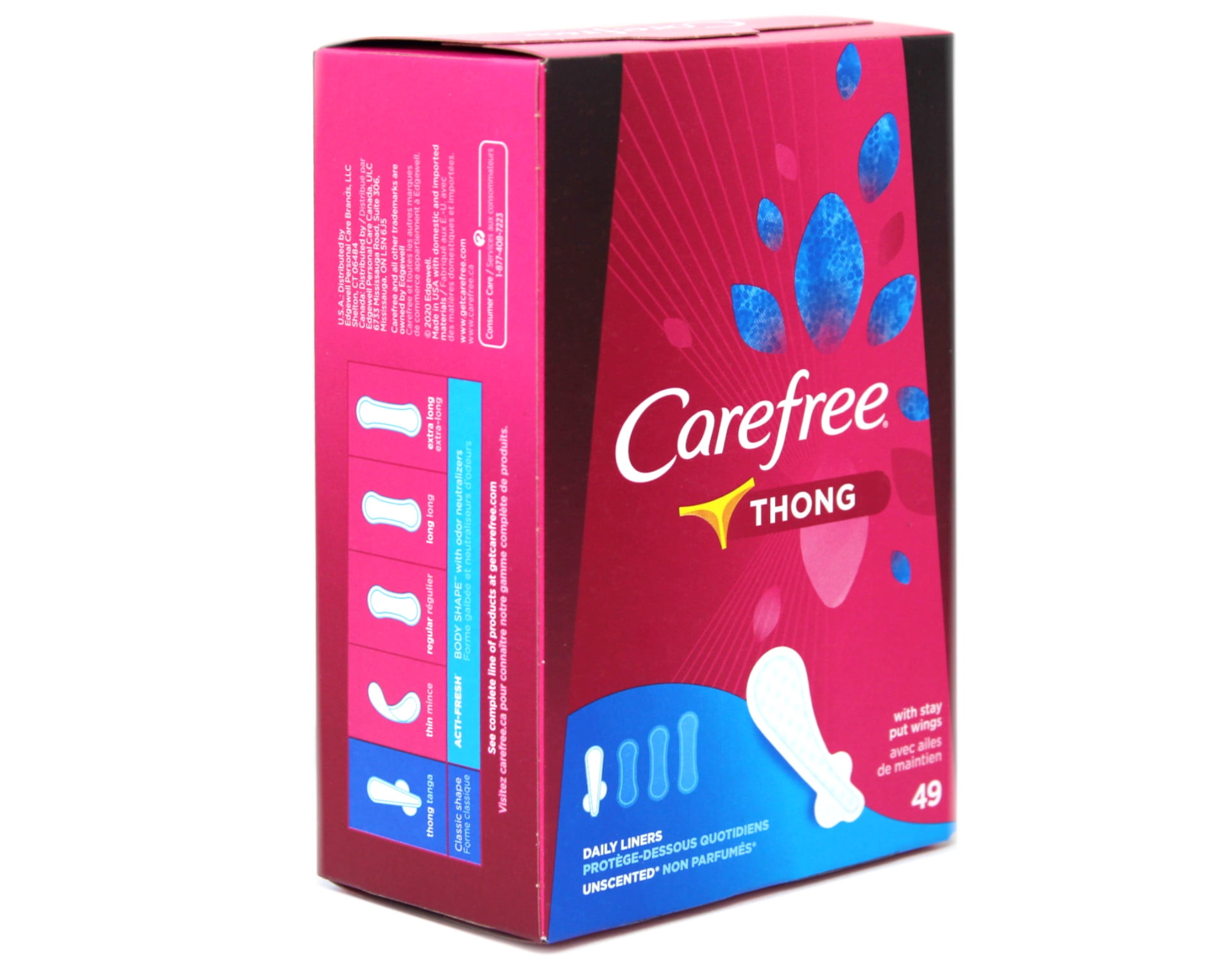 Sometimes, you don’t want to compromise your style to accommodate your panty liner. That’s why we created CAREFREE® THONG Panty Liners with stay-put wings to keep your liner in place. Designed specially to fit your skimpiest, sexiest undies, CAREFREE® THONG Liners have end-to-end adhesive to eliminate bunching to keep you moving… comfortably.