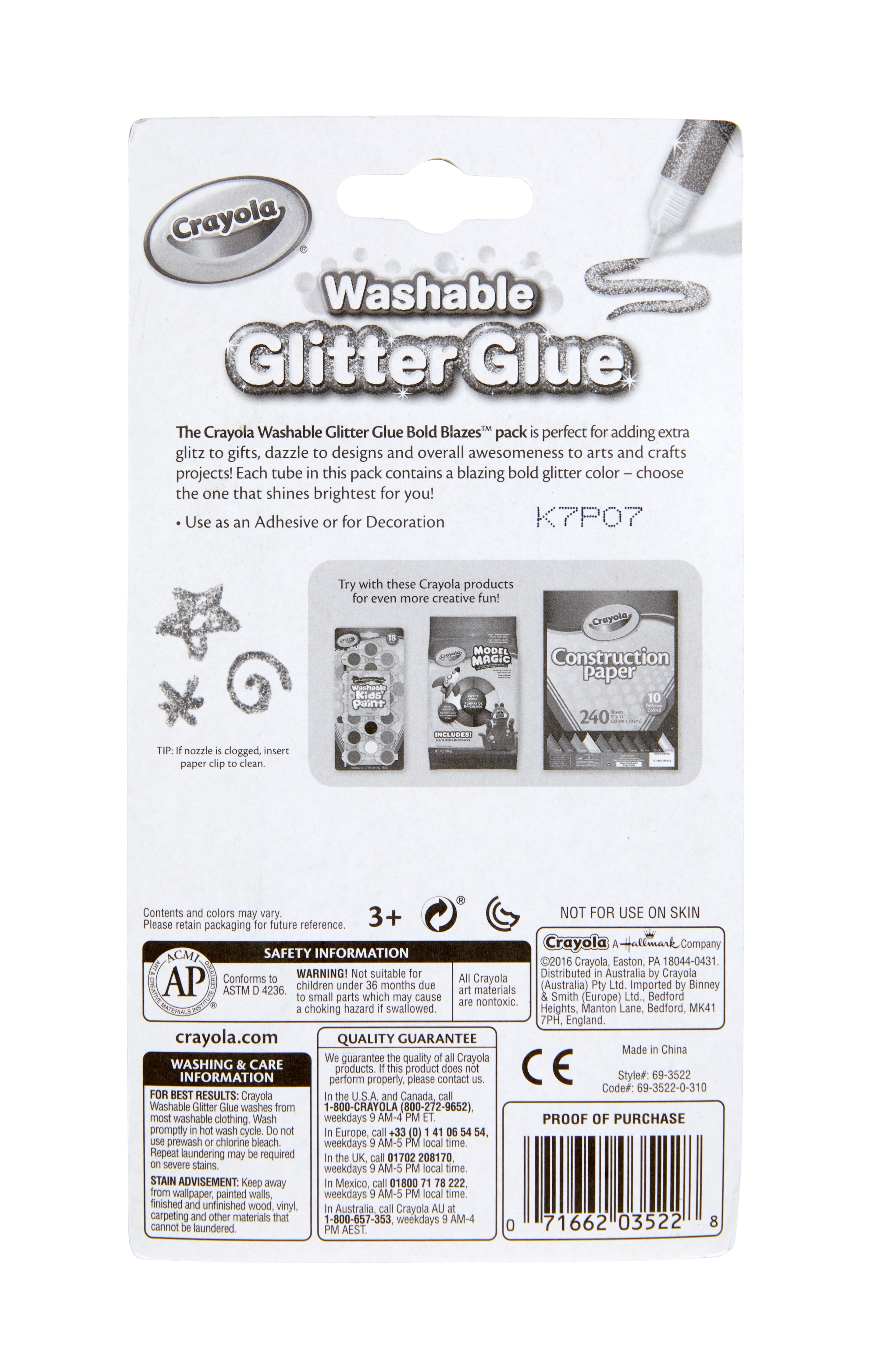 Crayola Washable Glitter Glue Coloring Set, Assorted Colors, Child, 5 Pieces