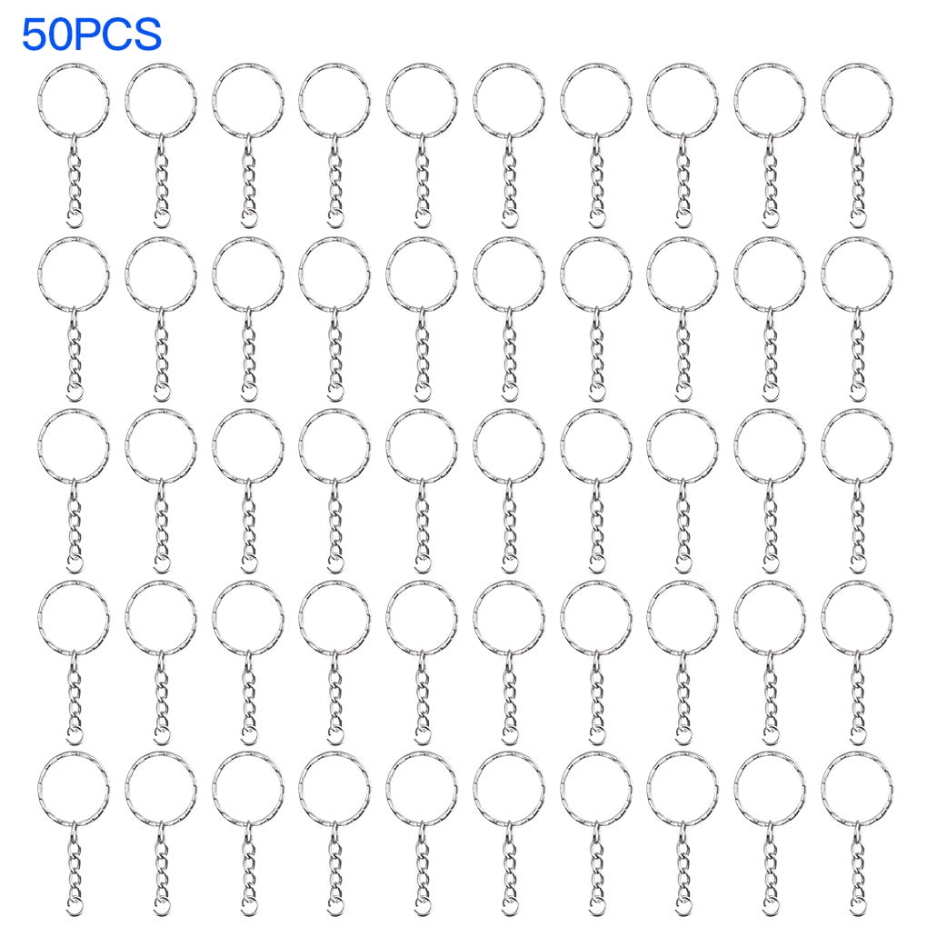 50pcs Keyring Round Key Holder Ring Metal Keychain with Curb Chain DIY Crafting Accessories
