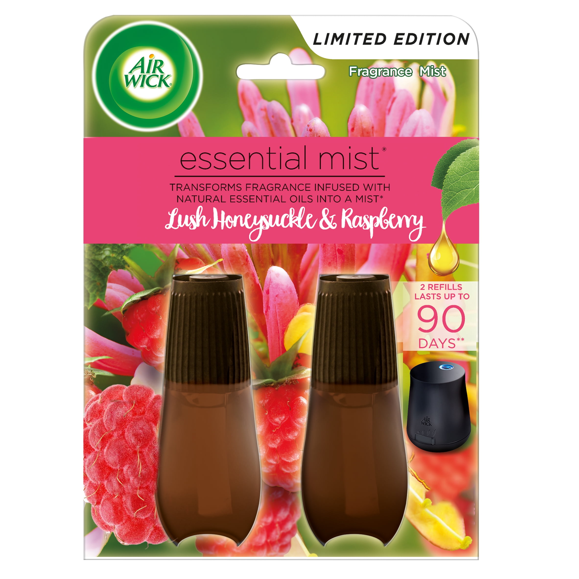 Air Wick Essential Mist Refill, 2 ct, Lush Honeysuckle & Raspberry, Essential Oils Diffuser, Air Freshener
