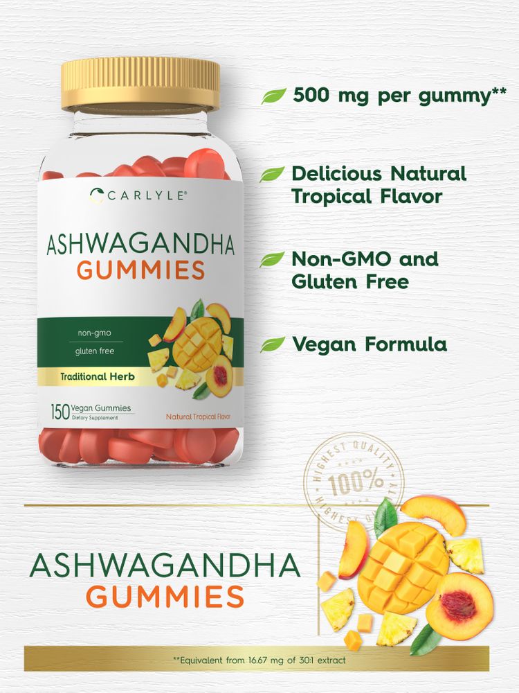 - ASHWAGANDHA GUMMIES: Enjoy this potent traditional herb with natural tropical flavor gummies!