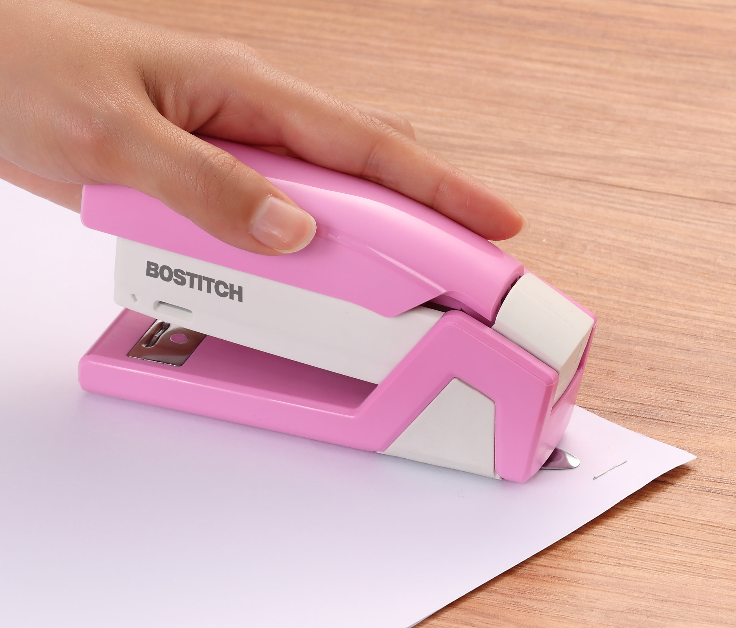 Paperwork can be a hassle but stapling it shouldn’t be. With the InCourage Spring-Powered Antimicrobial Compact Stapler’s One-Finger spring-powered technology by PaperPro, experience fast and easy, jam-free stapling when you need it most at school, work, or the home office. 80% easier than standard staplers, all it takes is the press of a finger to fasten up to 20 sheets. The lightweight, compact design allows for easier use when held, or taken on-the-go in a backpack or travel bag. With a built-in staple puller, staple storage compartment, and an ergonomic, curved design that positions perfectly in the palm of your hand, comfortably staple without missing a sheet. Opens for bulletin board tacking and craft use. Half strip (105) staple capacity; uses standard staples. For optimal performance, use Bostitch Premium Standard Staples (1901). A portion of the proceeds from this purchase is donated to cancer charities via the AMAX Spirit Foundation. Three-Year Limited Warranty.