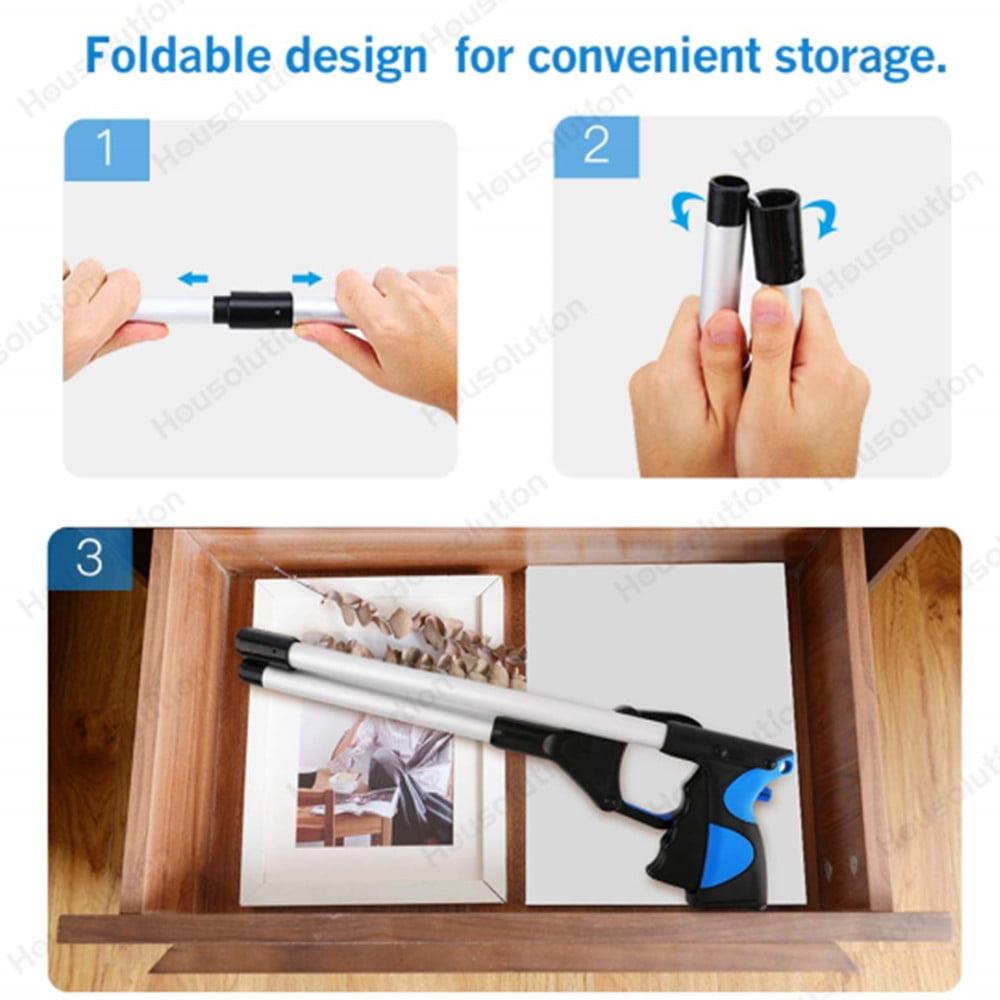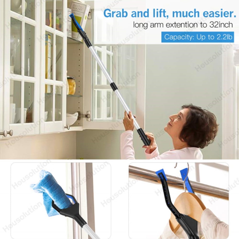 Housolution Grabber Reaching Tool,32′ Foldable Pick up Tool,Lightweight Aluminum Aid with Rotating Rubber Gripper,Long Arm Gripper for Elderly,Litter Picker,Blue