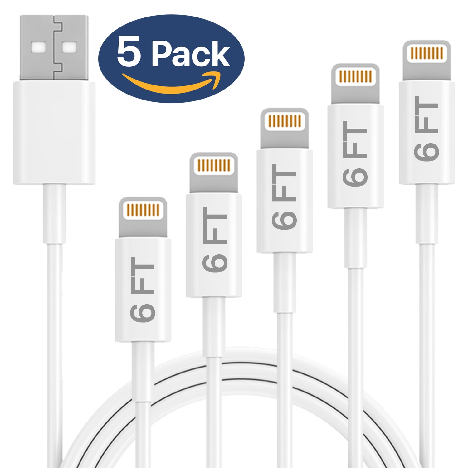iPhone Charger Lightning Cable Set, Ixir, MFI Certified 5x 6FT USB Cable, Compatible with Apple iPhone Xs,Xs Max,XR,X,8,8 Plus,7,7 Plus,6S,6S Plus,iPad Air,Mini/iPod Touch/Case Charging Cord