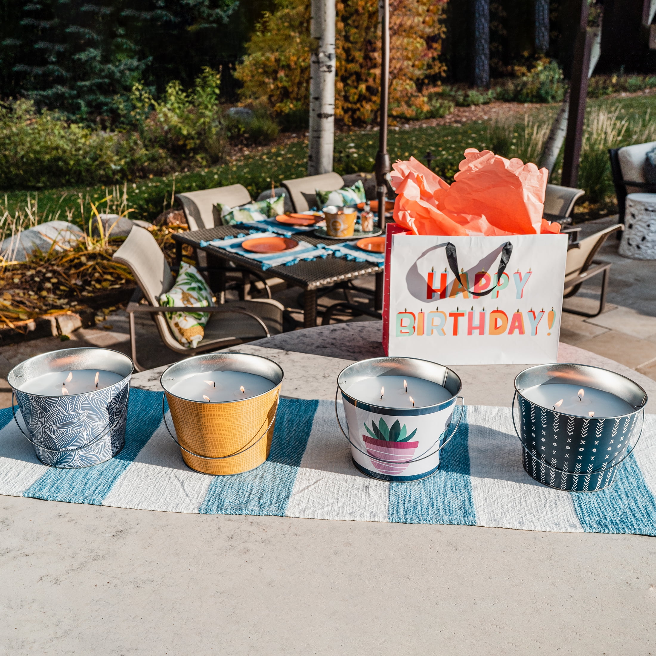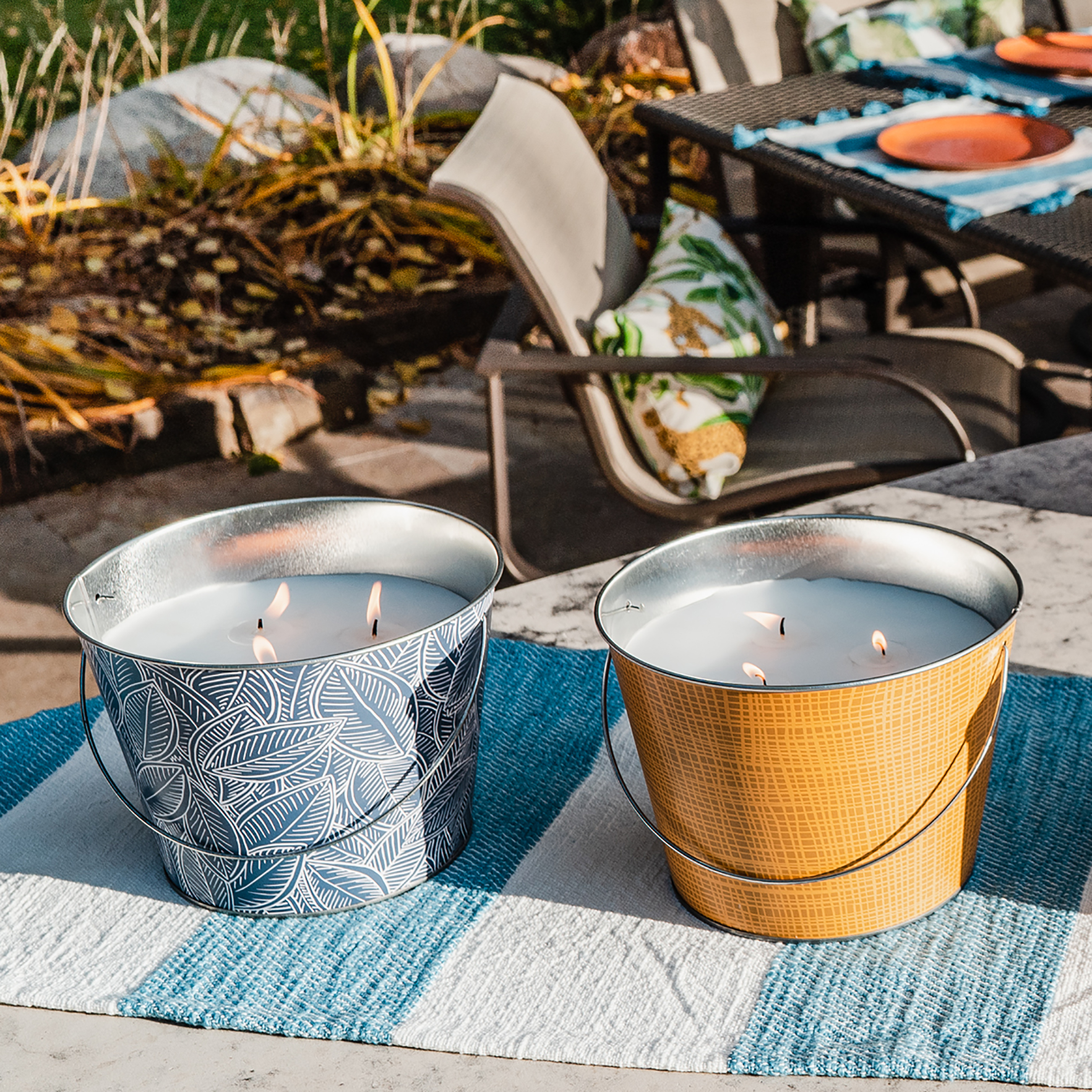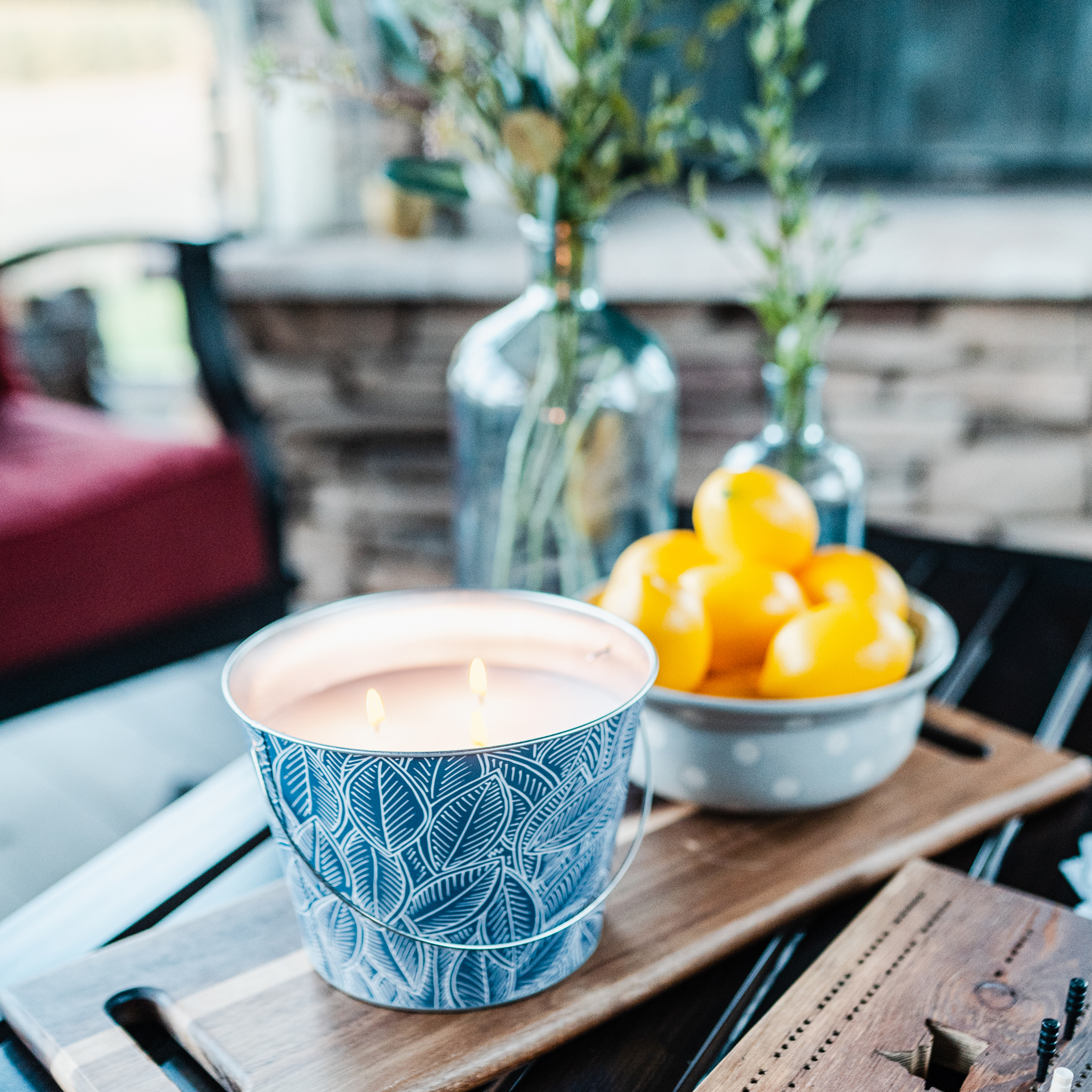 - Mainstays 30-Ounce, 3-Wick Leaf Bucket Outdoor Citronella Candle, Blue