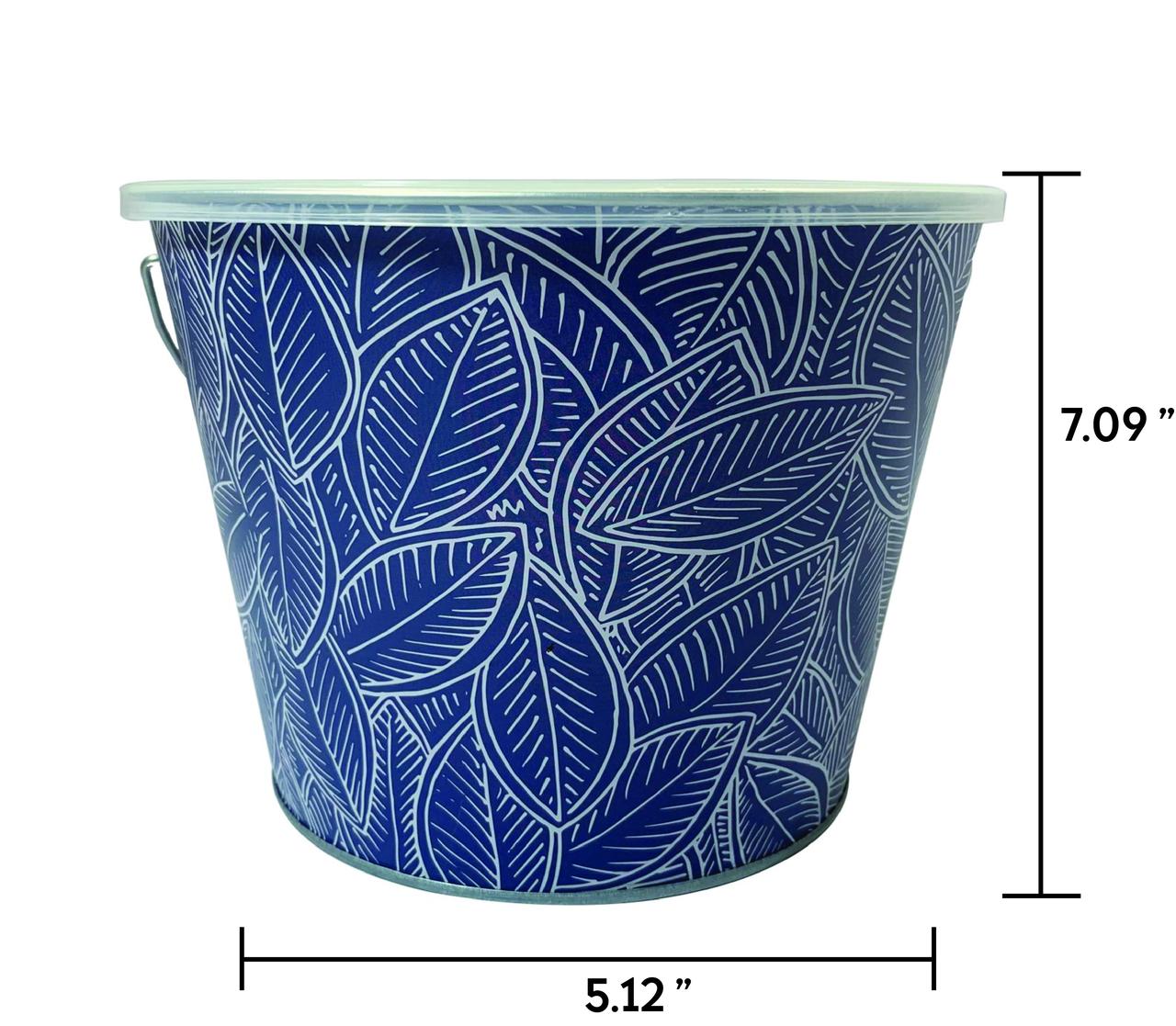 Keep mosquitoes away with the Mainstays 30-Ounce, 3-Wick Leaf Bucket Outside Citronella Candle, Blue! Citronella oil acts as a natural mosquito repellent. This 7.1-inch printed metal bucket has a subtle blue and white leaf pattern that will add a touch of springtime fun to your patio. This 30-ounce candle burns up to 50 hours, and the three wicks illuminate your yard with candlelight. Grab a few of these citronella candles for your next picnic or camping trip because the sturdy handle and lid make them perfect for traveling. For best results, place several Mainstays citronella candles around the area where people gather to create a perimeter against mosquitoes. The Mainstays 30-Ounce, 3-Wick Leaf Bucket Outside Citronella Candle in Blue brings comfort to any outdoor space.