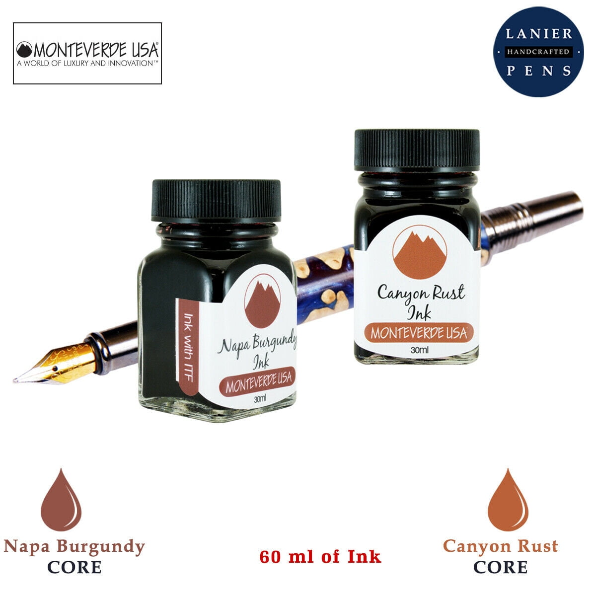 Monteverde 60ml Core Fountain Pen Ink Bottle (30ml Napa Burgundy Ink Bottle G309NB, 30ml Canyon Rust Ink Bottle G309CP)