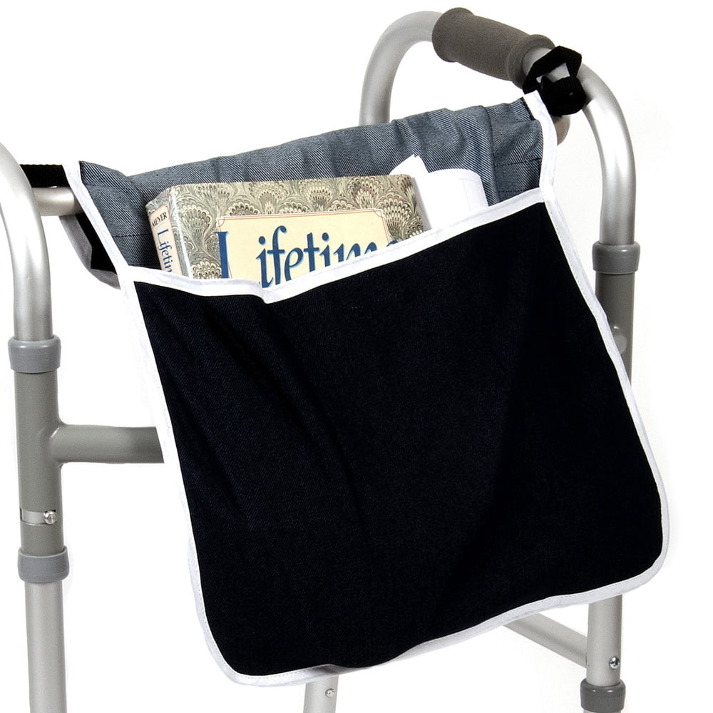The PCP Walker Pouch is handy for transporting and concealing personal belongings like money or medication. It can assist people who use a walker temporarily to recover from injuries or as a daily living aid. The hanging walker pouch has an attractive appearance with a contrasting inner lining and crisp white piping around the edges. It is made of denim to be sturdy and long-lasting. There are two pockets on the inside for convenient organization of the contents. This product is easy to attach and is compatible with almost any model of walker (sold separately).